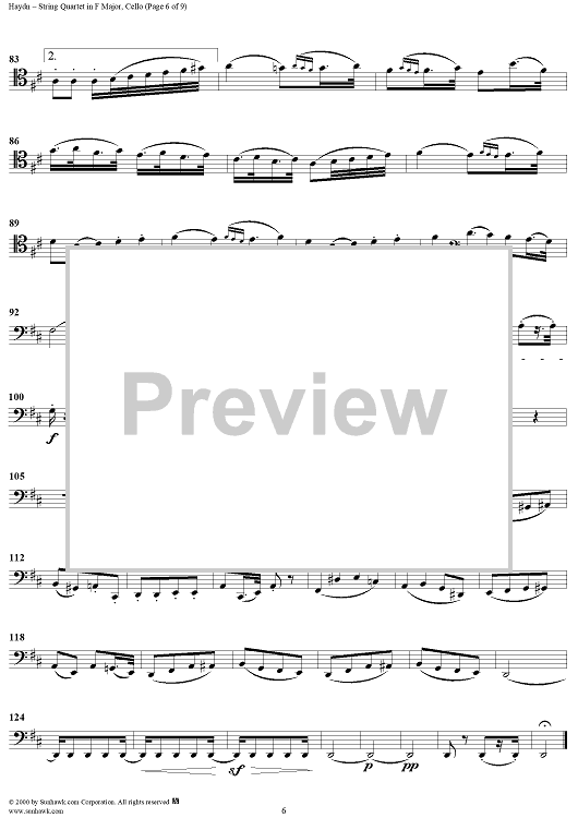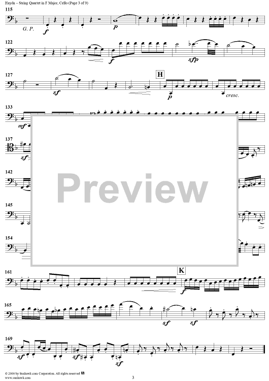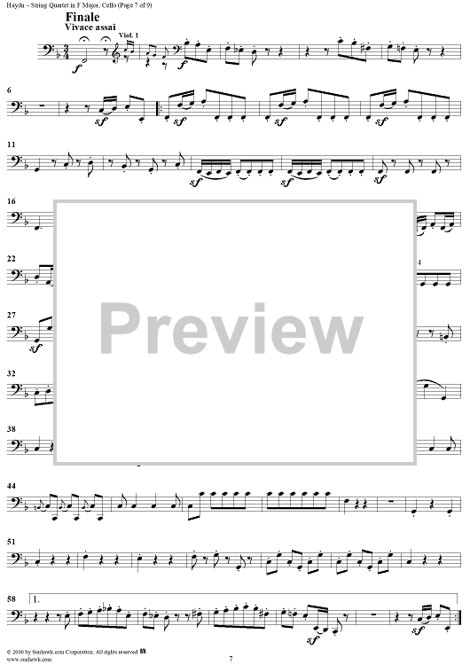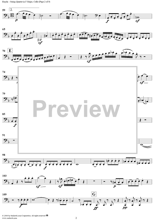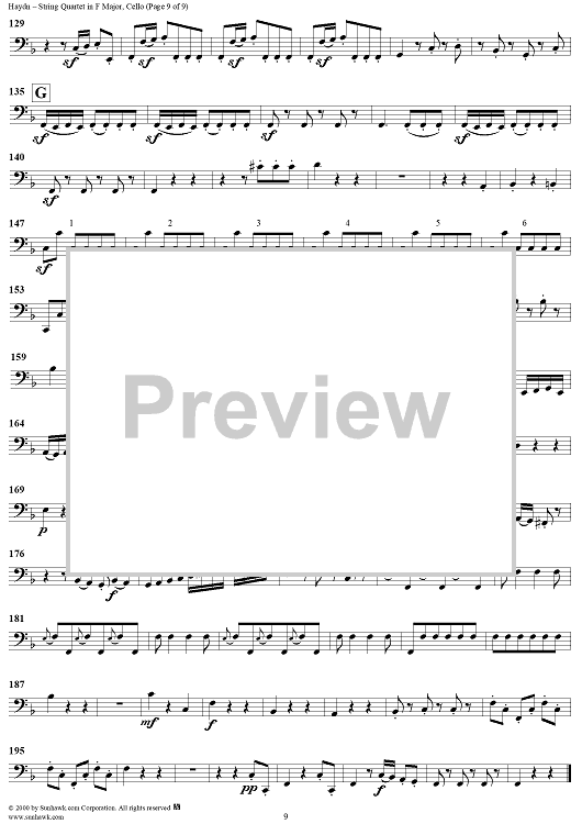 Digital Sheet Music for String Quartet in F Major, Op. 77, No. 2 - Cello by Franz Joseph Haydn scored for String Quartet; id:176619