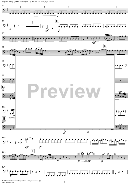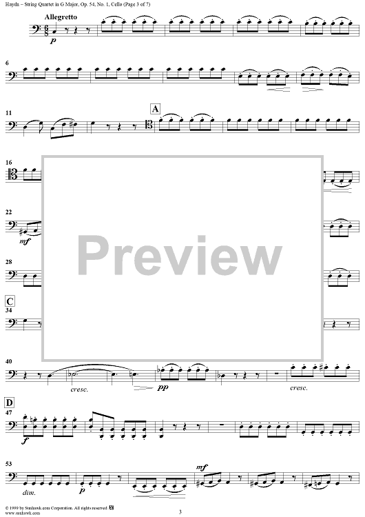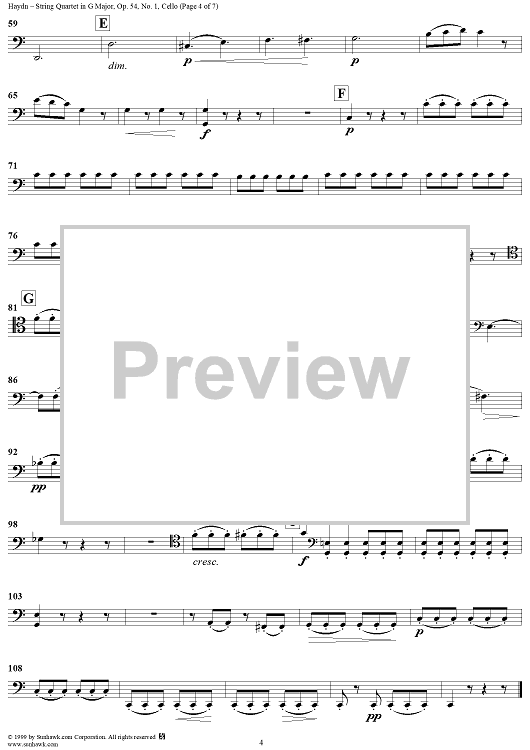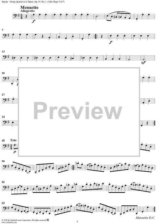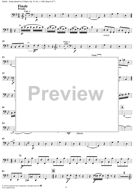 Digital Sheet Music for String Quartet in G major, Op. 54, No. 1 - Cello by Franz Joseph Haydn scored for String Quartet; id:176607