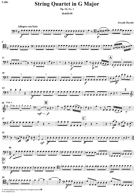 "String Quartet in G major, Op. 54, No. 1 - Cello" Sheet Music by Franz Joseph Haydn