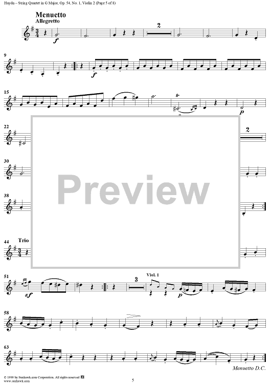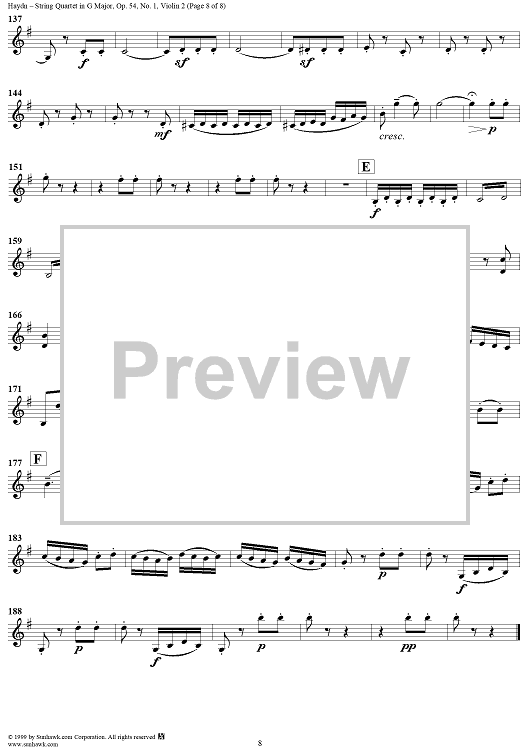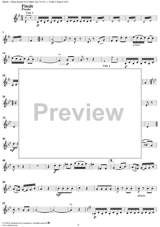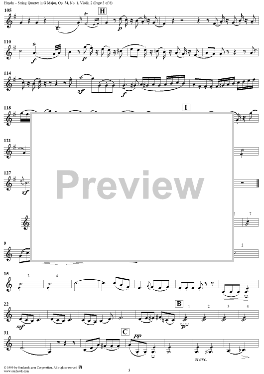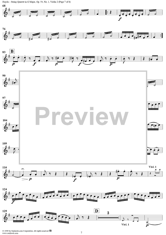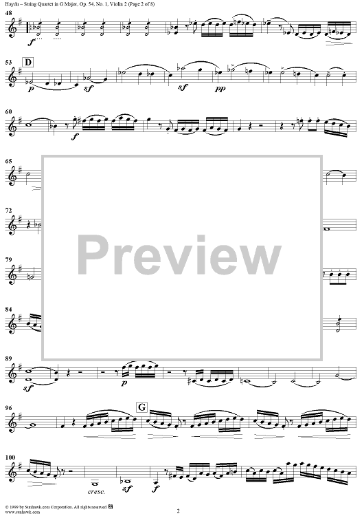 Digital Sheet Music for String Quartet in G major, Op. 54, No. 1 - Violin 2 by Franz Joseph Haydn scored for String Quartet; id:131775