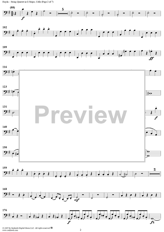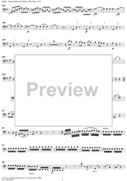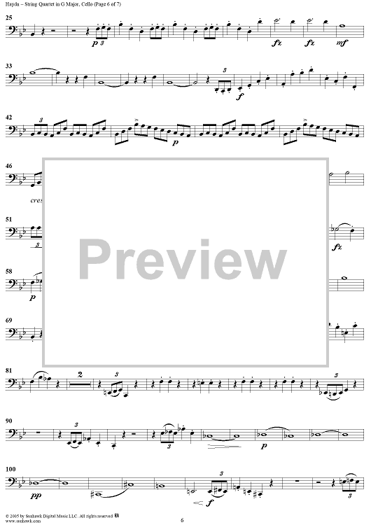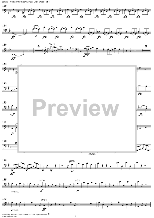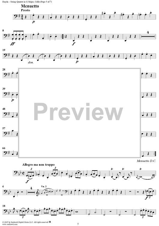 Digital Sheet Music for String Quartet in G Major, Op. 76, No. 1 - Cello by Franz Joseph Haydn scored for String Quartet; id:309116