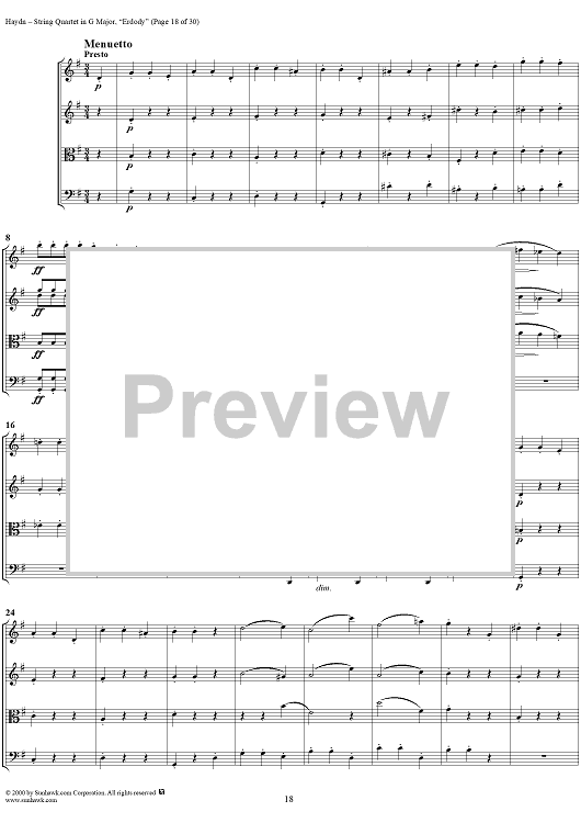 Digital Sheet Music for String Quartet in G Major, Op. 76, No. 1 - Score by Franz Joseph Haydn scored for String Quartet; id:235859