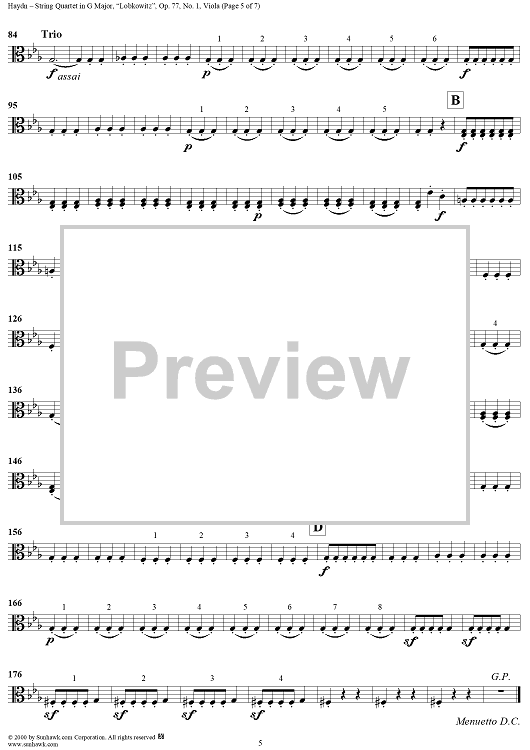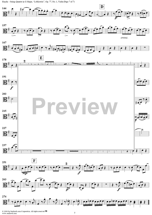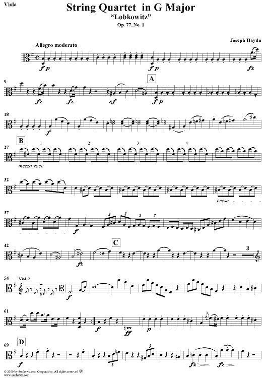 "String Quartet in G Major, Op. 77, No. 1 ("Lobkowitz") - Viola" Sheet Music by Franz Joseph Haydn