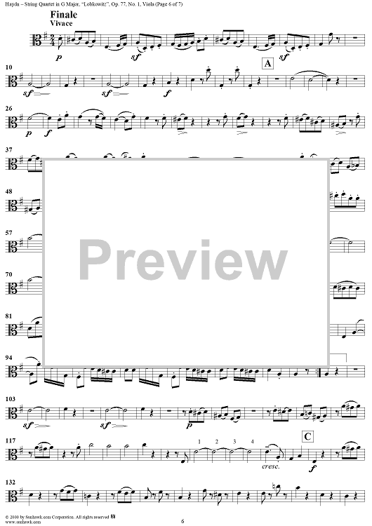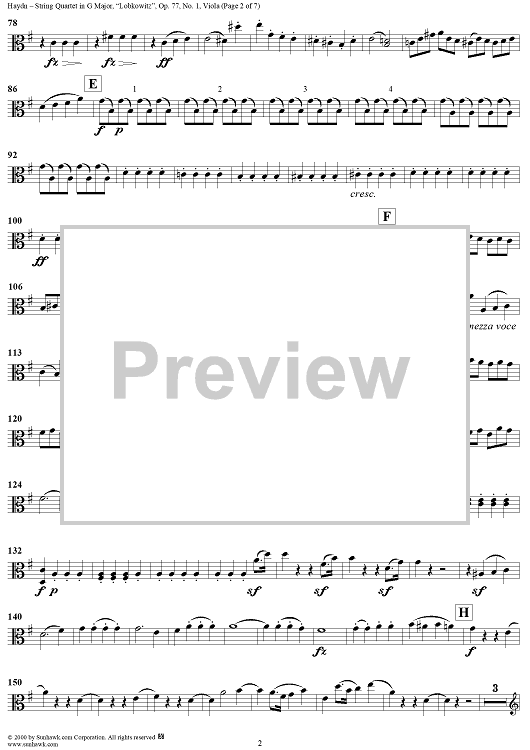 Digital Sheet Music for String Quartet in G Major, Op. 77, No. 1 ("Lobkowitz") - Viola by Franz Joseph Haydn scored for String Quartet; id:241411