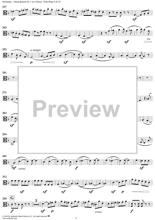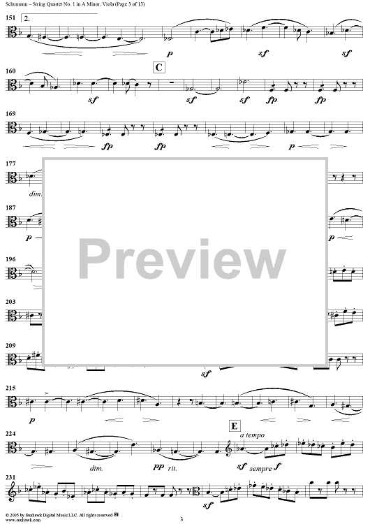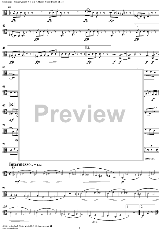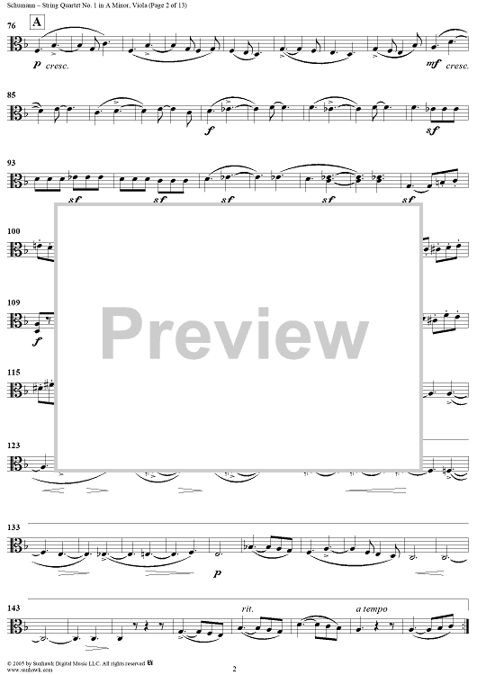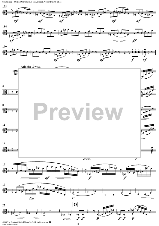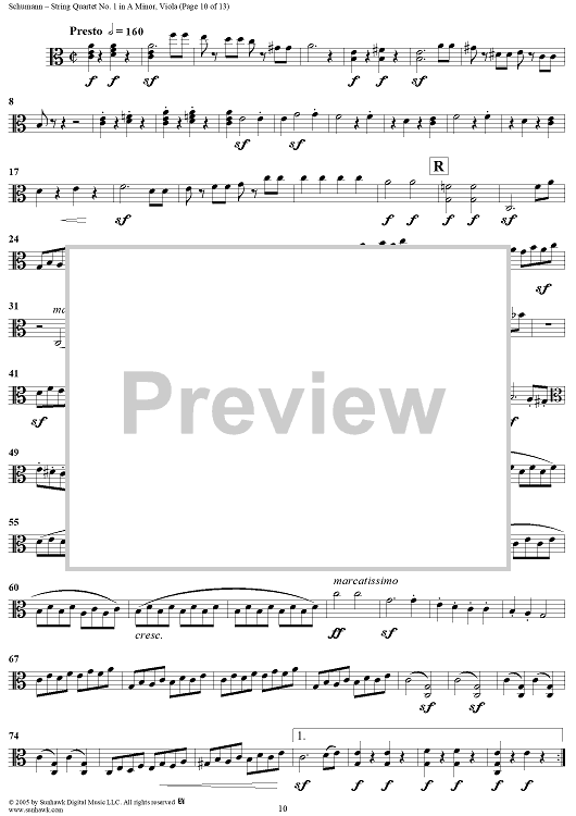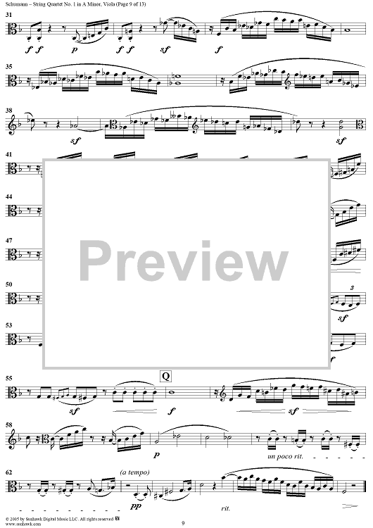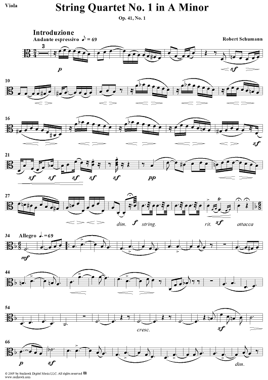 Digital Sheet Music for String Quartet No. 1 in A Minor, Op. 41, No. 1 - Viola by Robert Schumann scored for String Quartet; id:309700