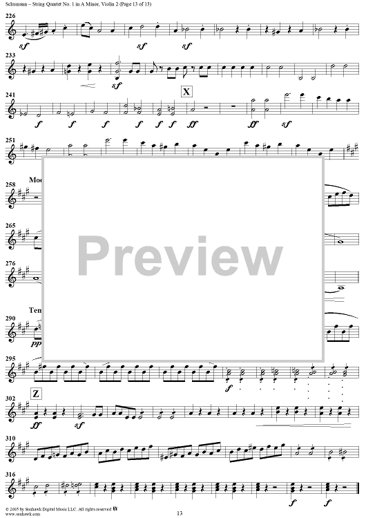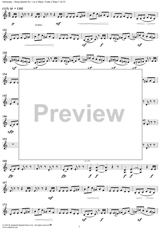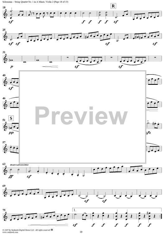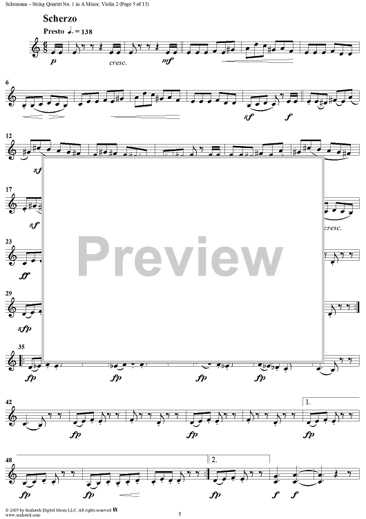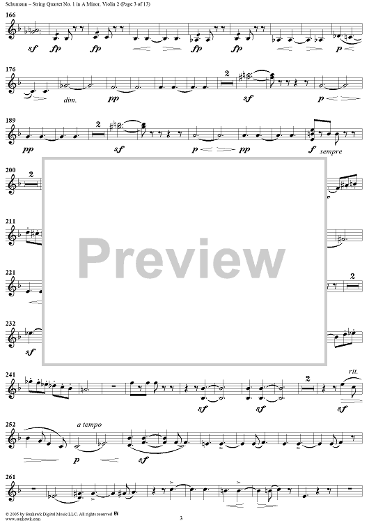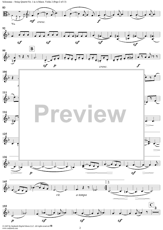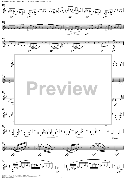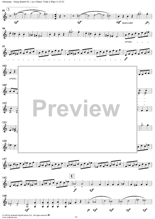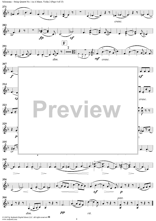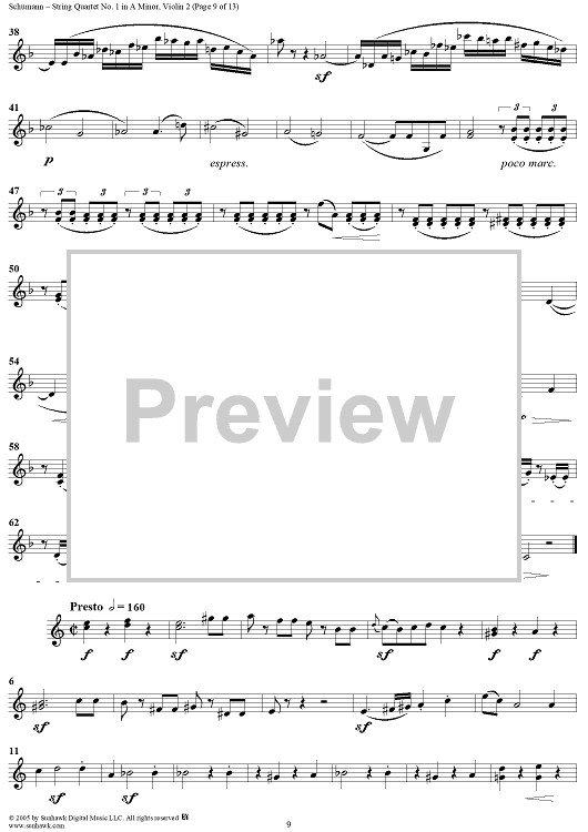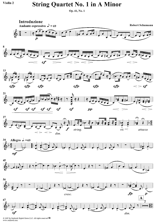 Digital Sheet Music for String Quartet No. 1 in A Minor, Op. 41, No. 1 - Violin 2 by Robert Schumann scored for String Quartet; id:309699