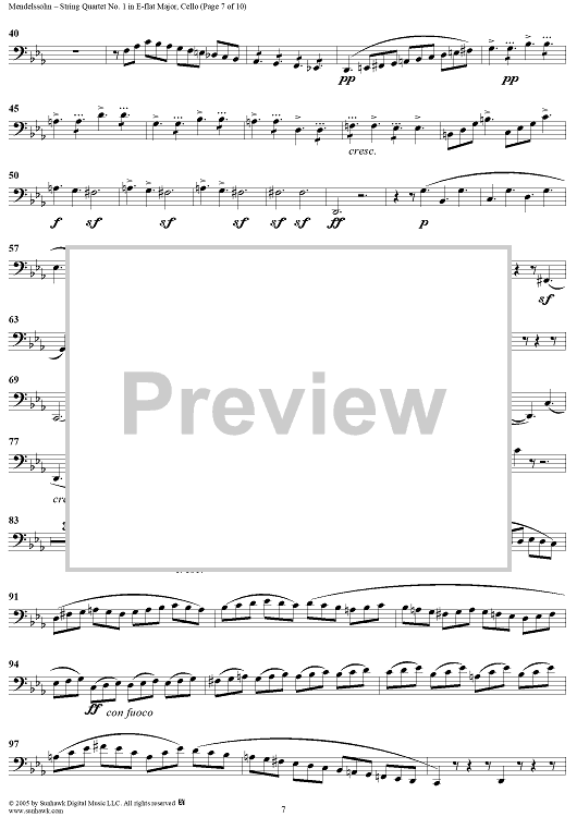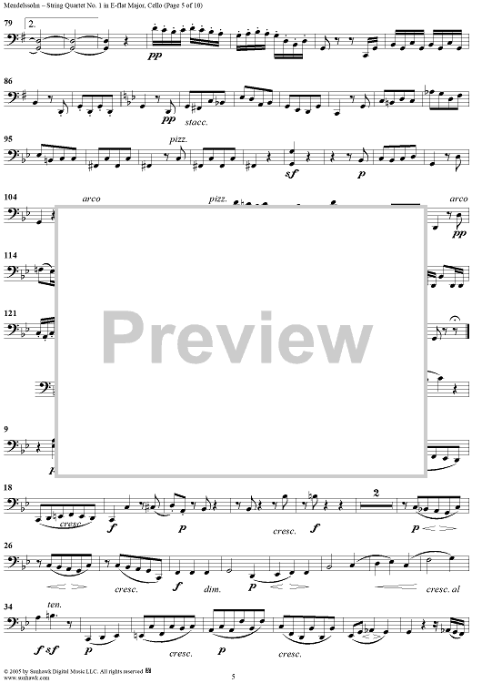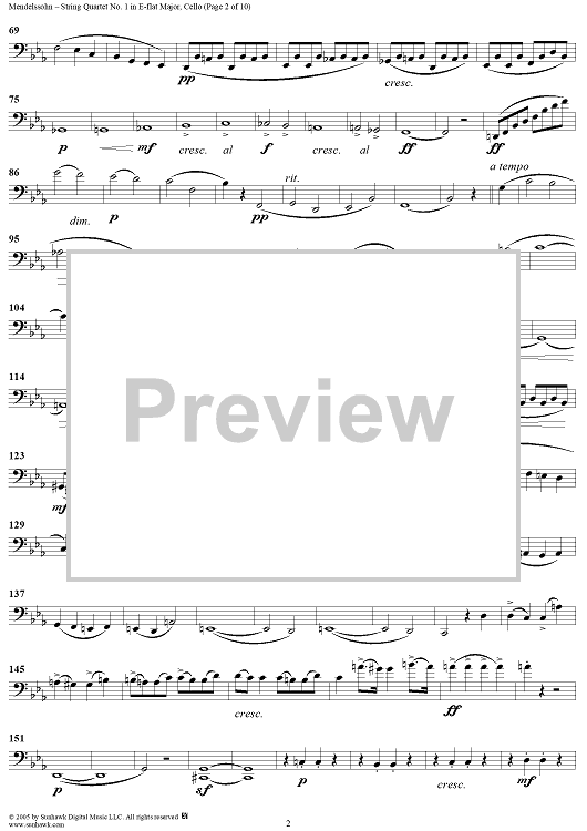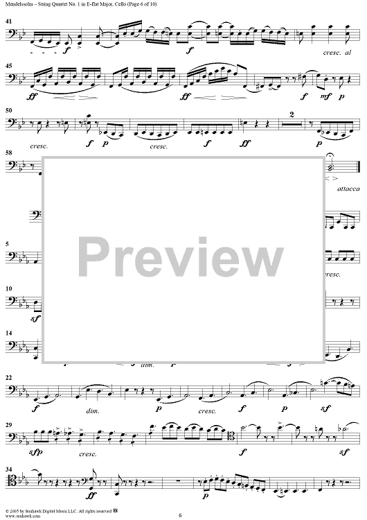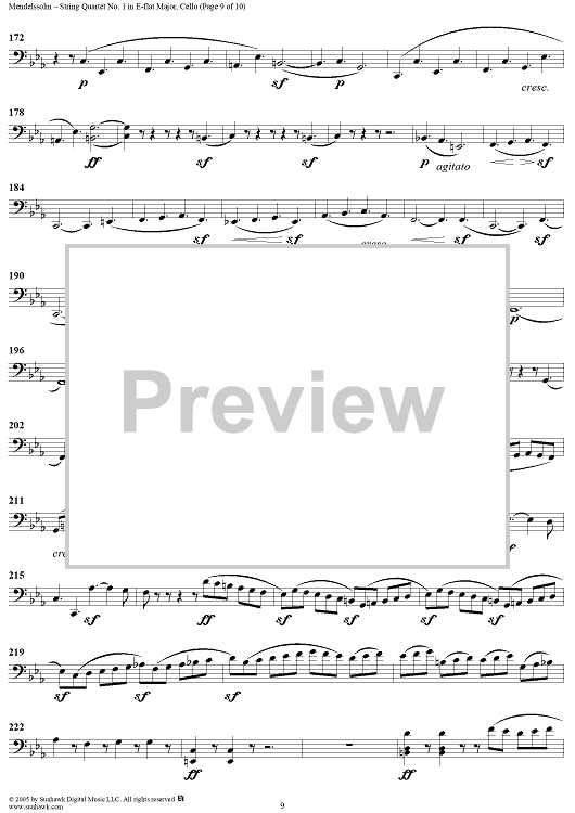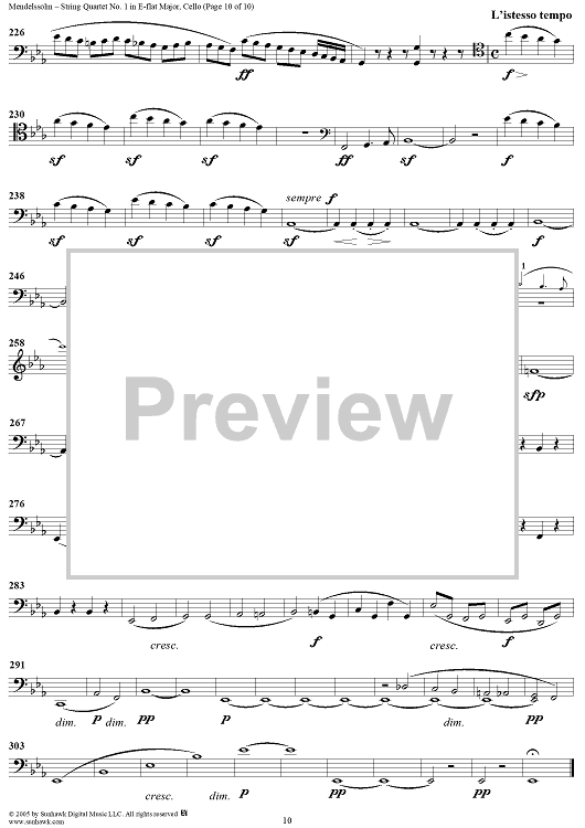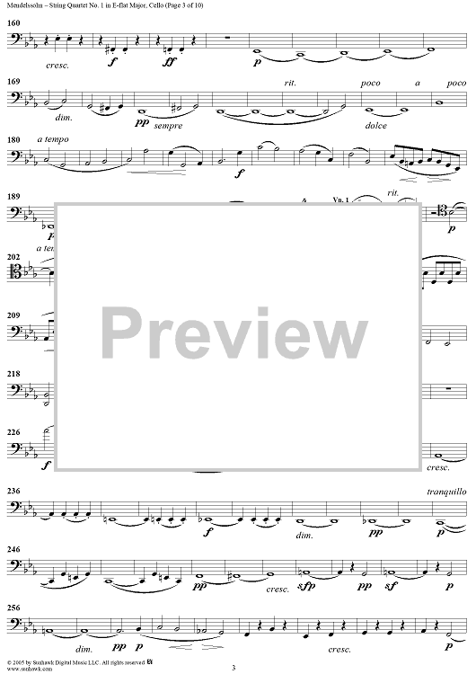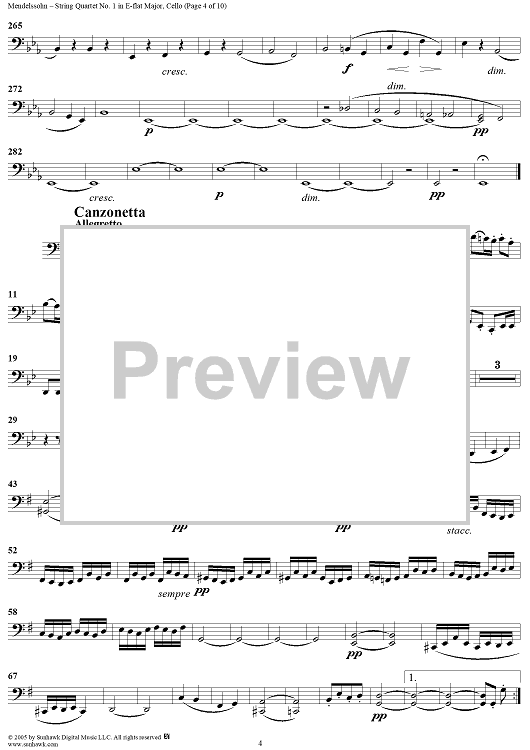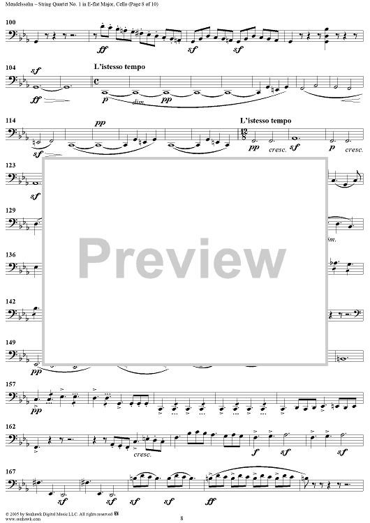Digital Sheet Music for String Quartet No. 1 in E-flat Major, Op. 12 - Cello by Felix Mendelssohn scored for String Quartet; id:309521