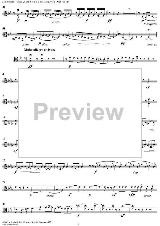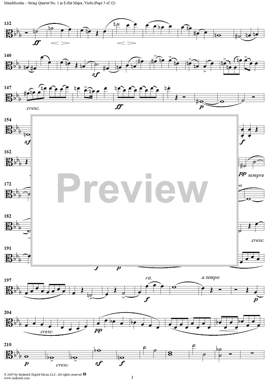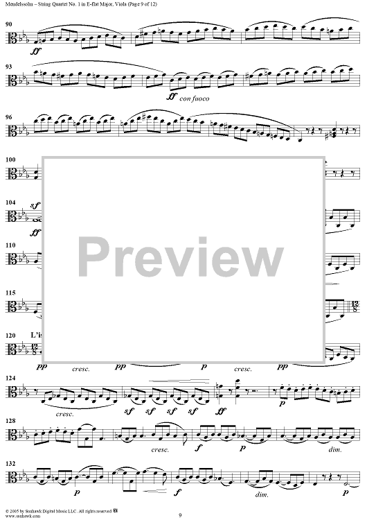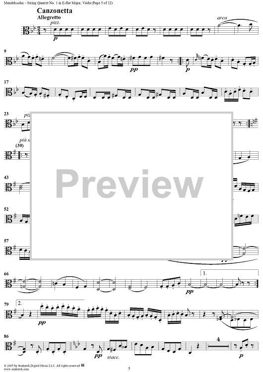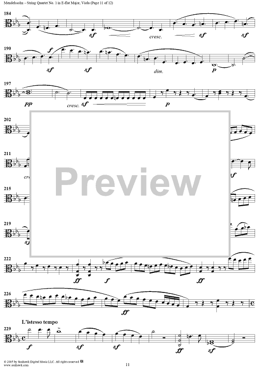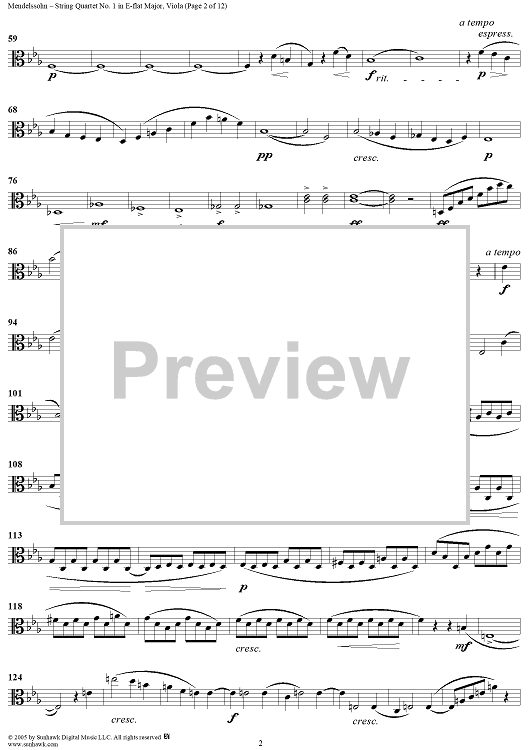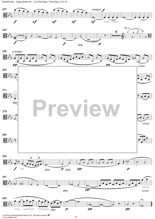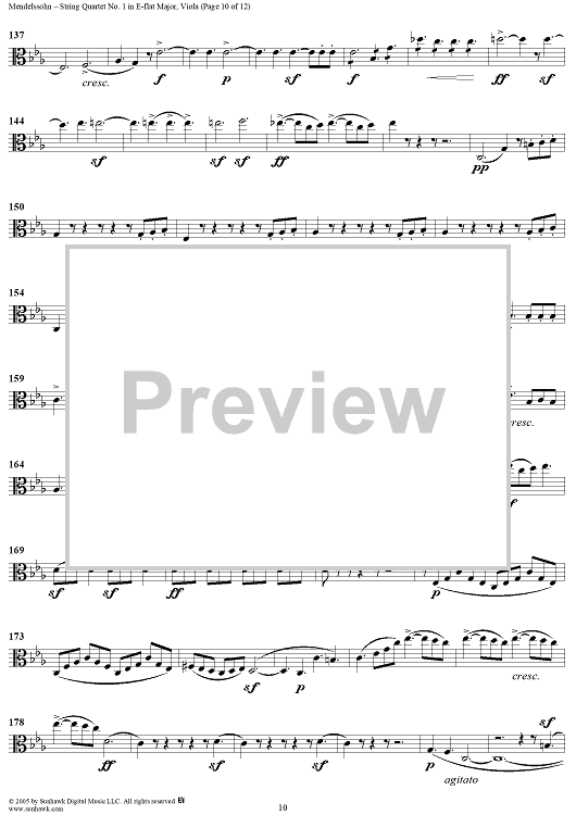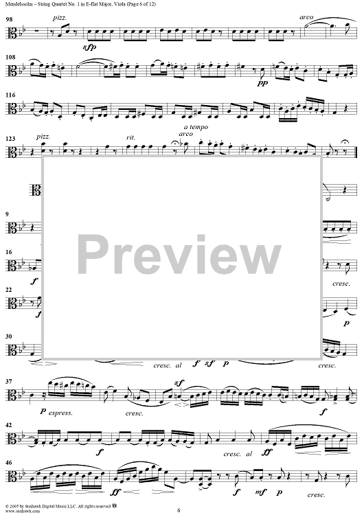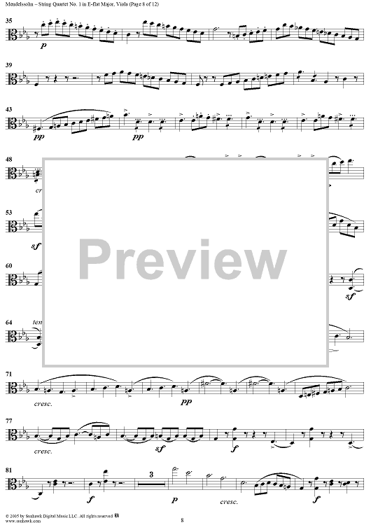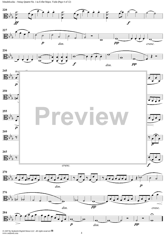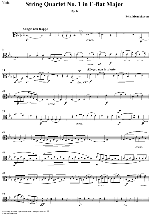 Digital Sheet Music for String Quartet No. 1 in E-flat Major, Op. 12 - Viola by Felix Mendelssohn scored for String Quartet; id:309520