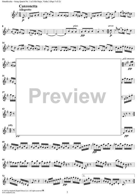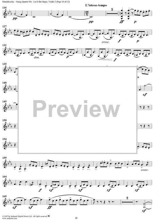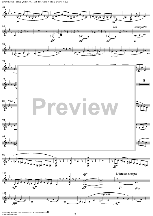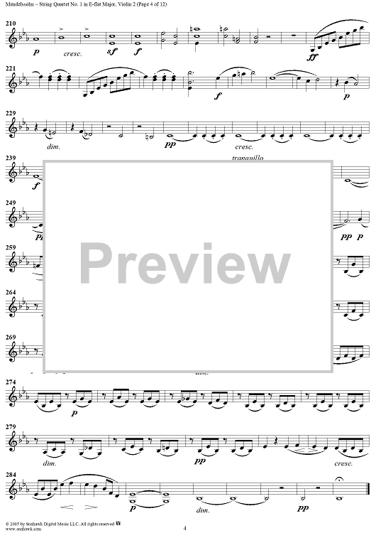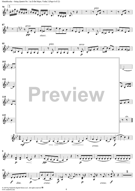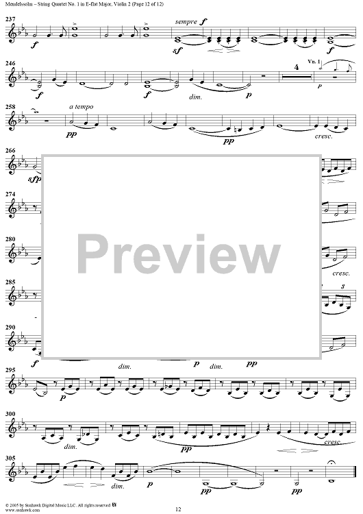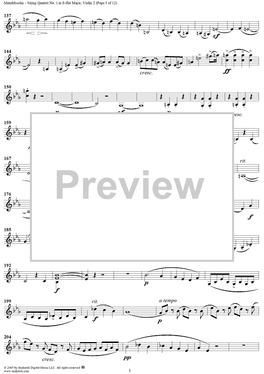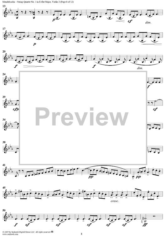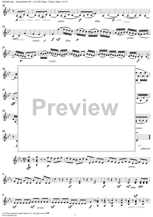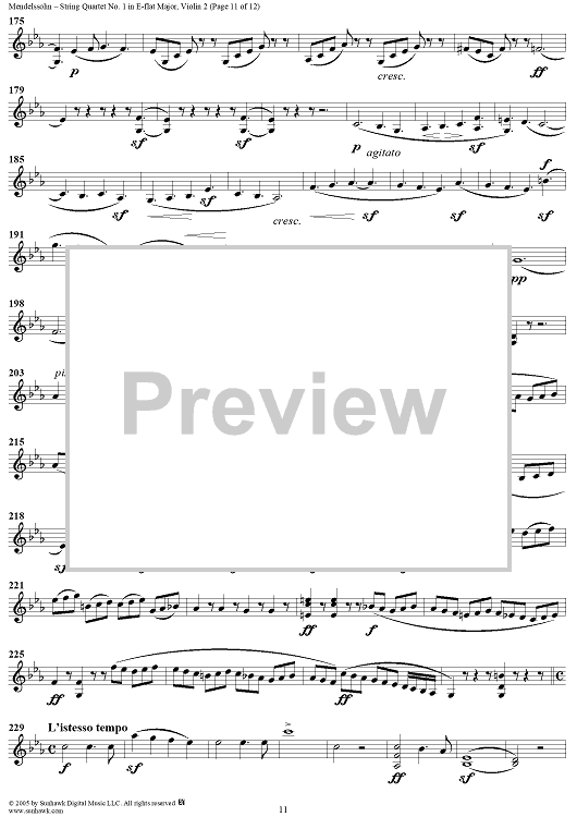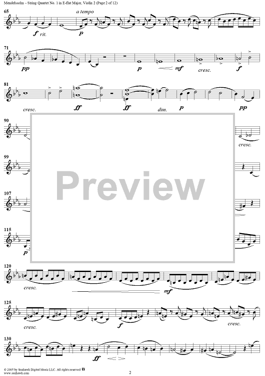 Digital Sheet Music for String Quartet No. 1 in E-flat Major, Op. 12 - Violin 2 by Felix Mendelssohn scored for String Quartet; id:309519