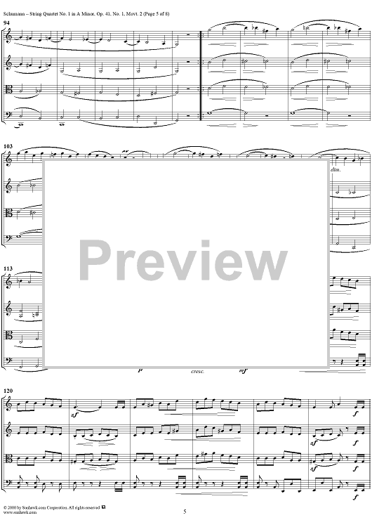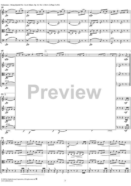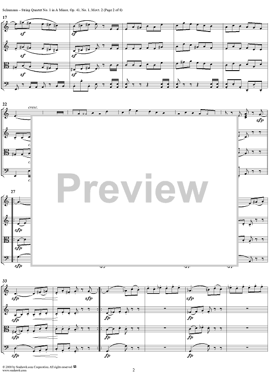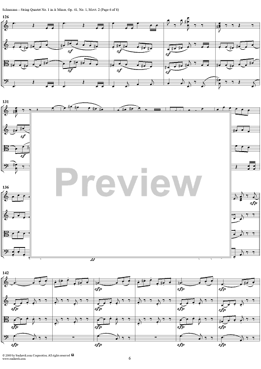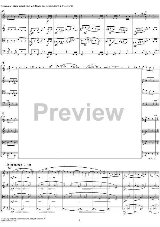 Digital Sheet Music for String Quartet No. 1, Movement 2 - Score by Robert Schumann scored for String Quartet; id:241397