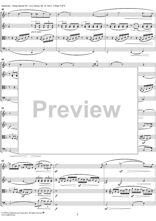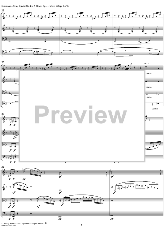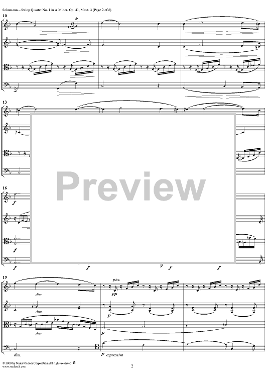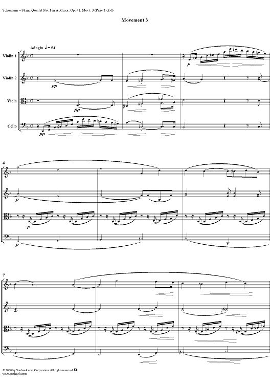 Digital Sheet Music for String Quartet No. 1, Movement 3 - Score by Robert Schumann scored for String Quartet; id:241466