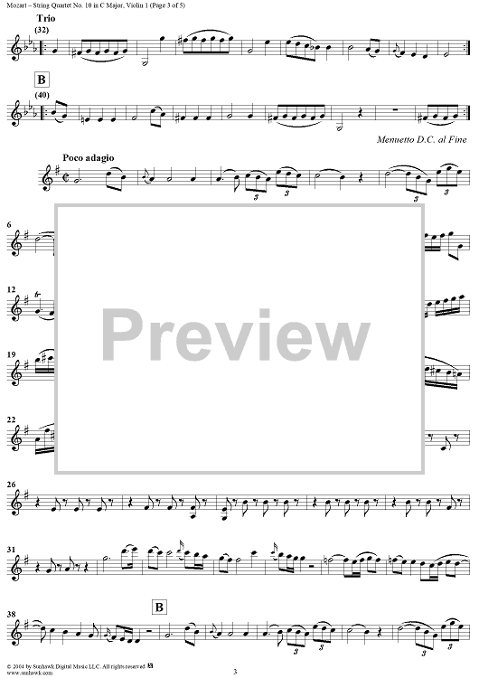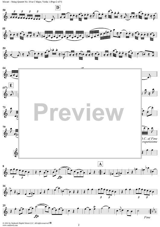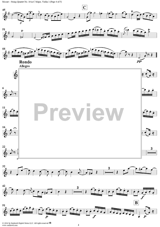 Digital Sheet Music for String Quartet No. 10 in C Major, K170 - Violin 1 by Wolfgang Amadeus Mozart scored for String Quartet; id:304126