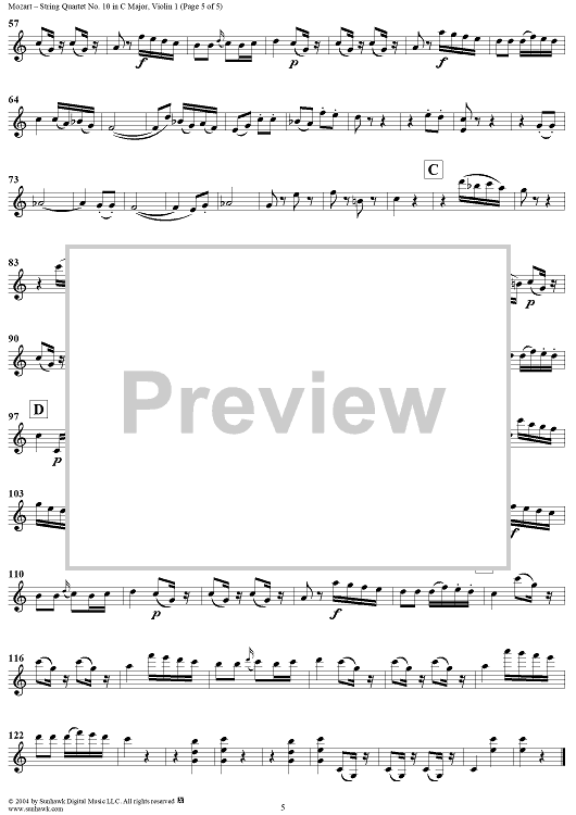"String Quartet No. 10 in C Major, K170 - Violin 1" Sheet Music by Wolfgang Amadeus Mozart