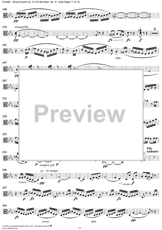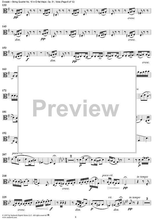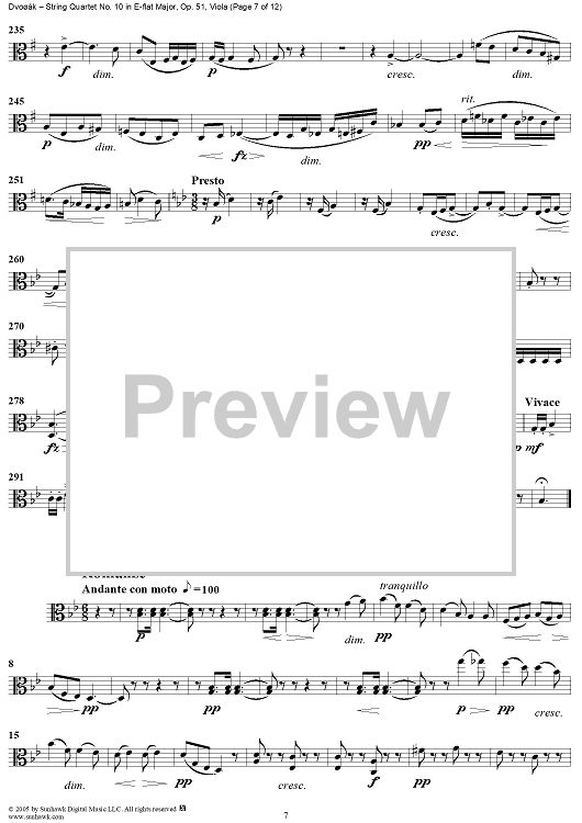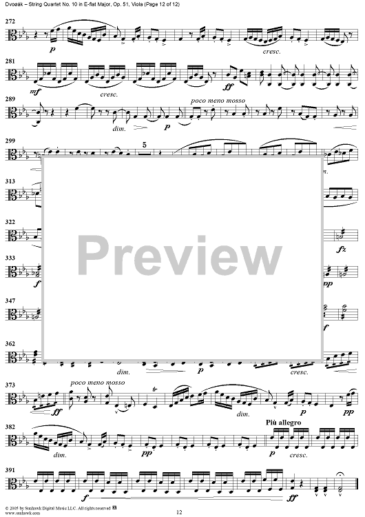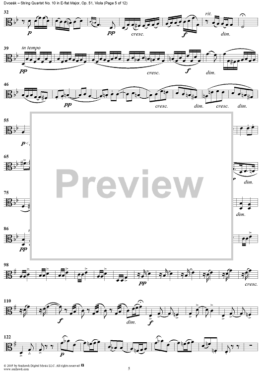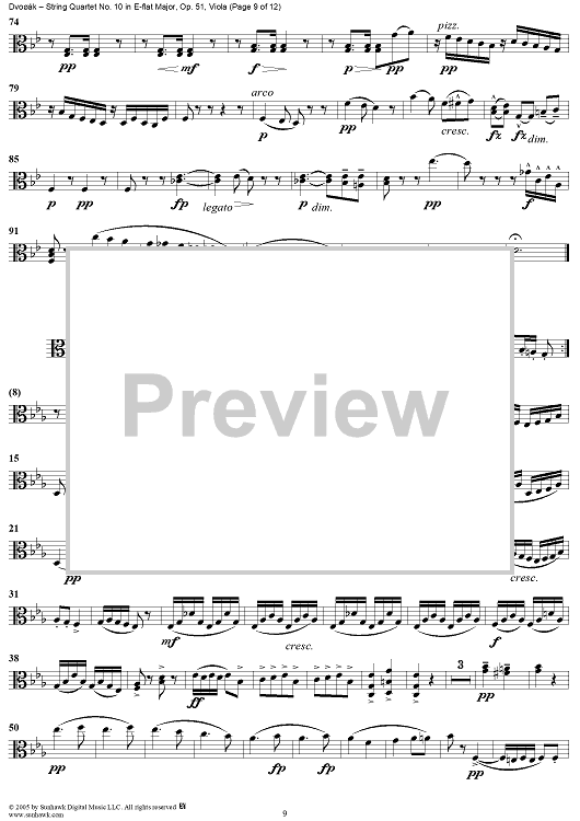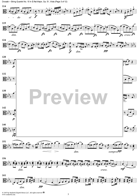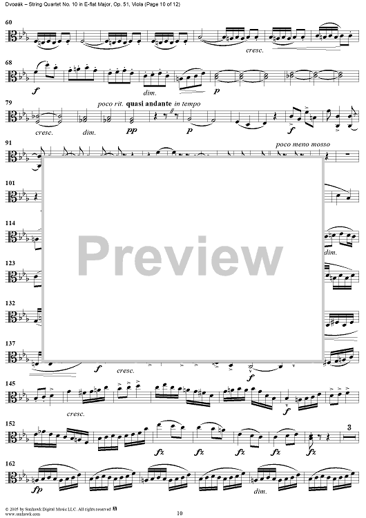 Digital Sheet Music for String Quartet No. 10 in E-flat Major, Op. 51 - Viola by Antonín Dvorák scored for String Quartet; id:309695