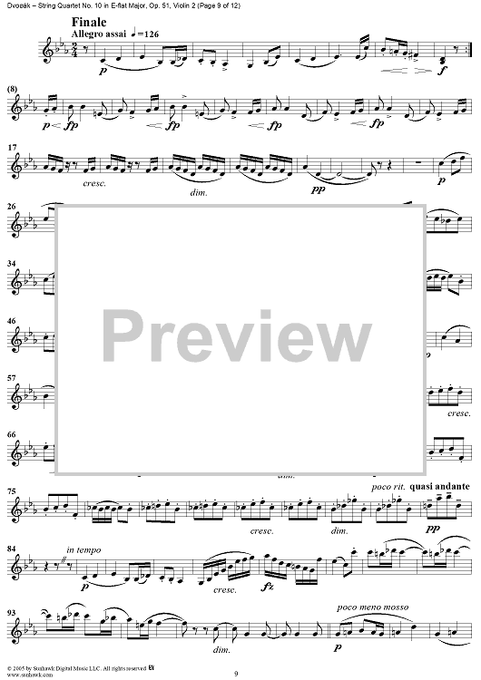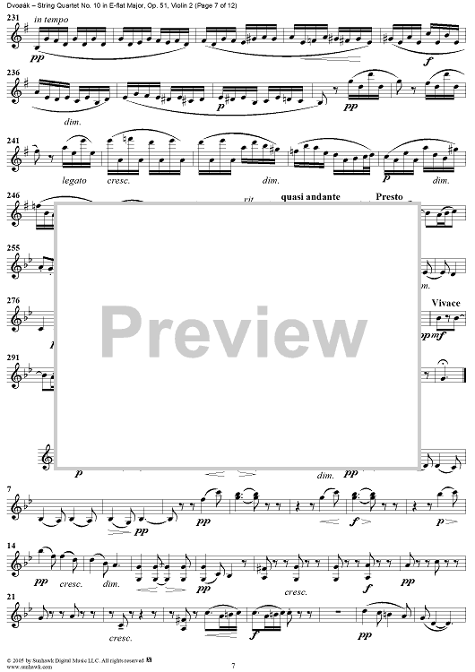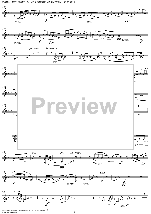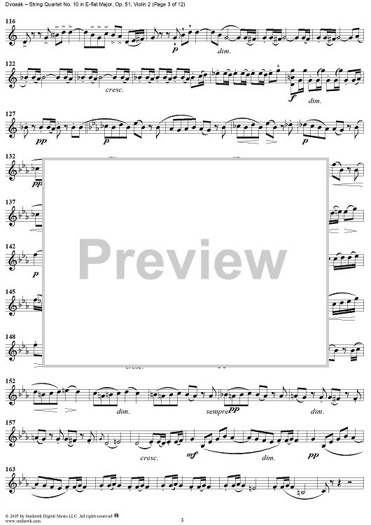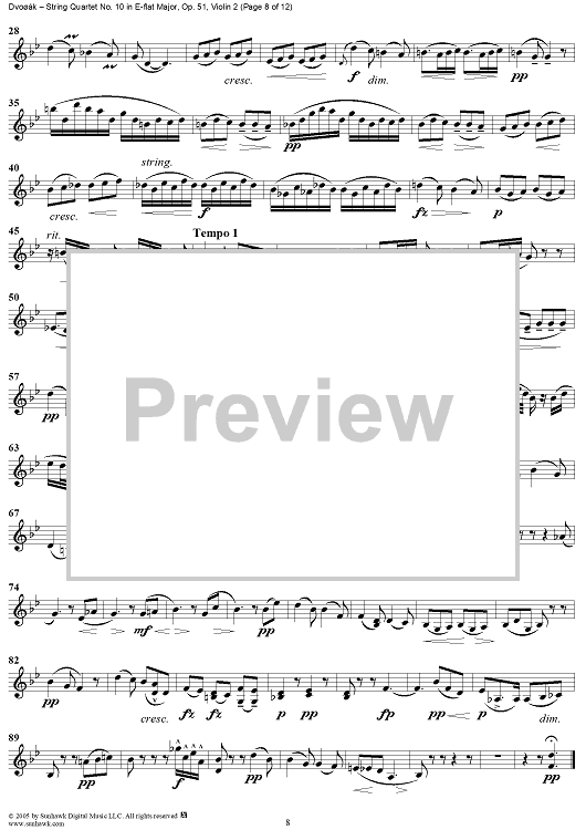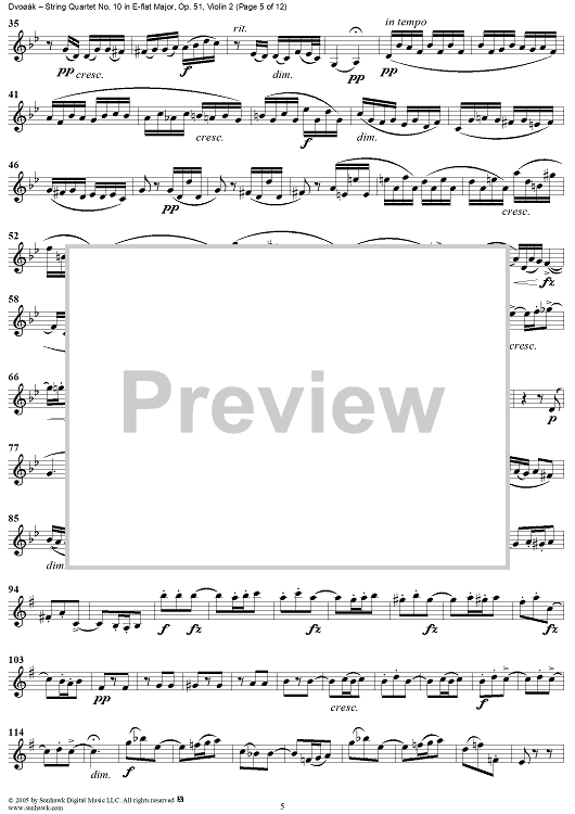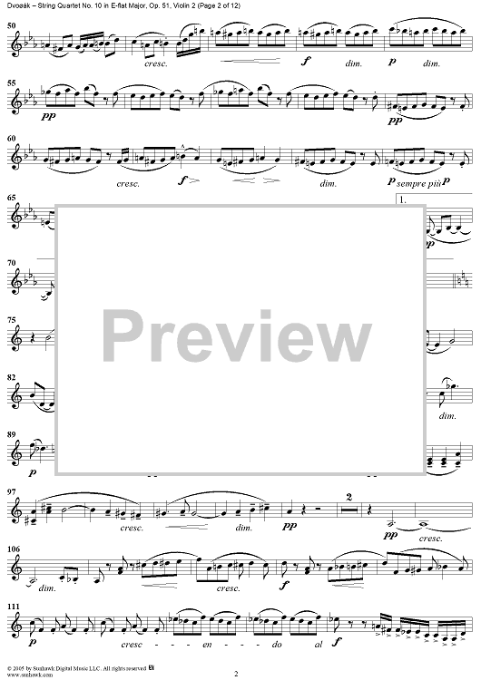 Digital Sheet Music for String Quartet No. 10 in E-flat Major, Op. 51 - Violin 2 by Antonín Dvorák scored for String Quartet; id:309694