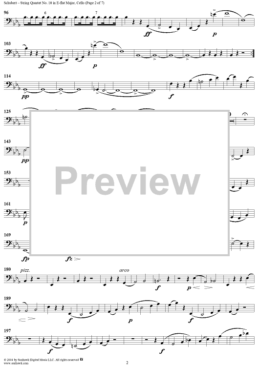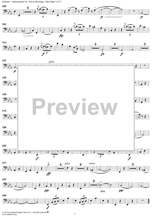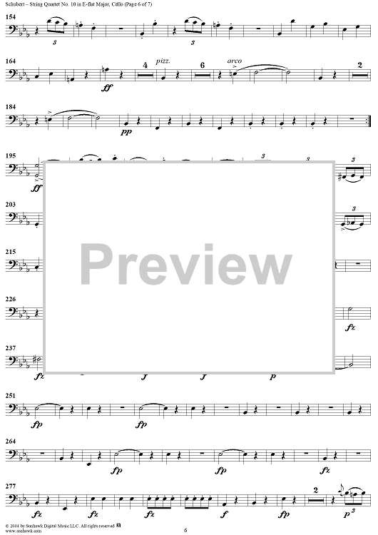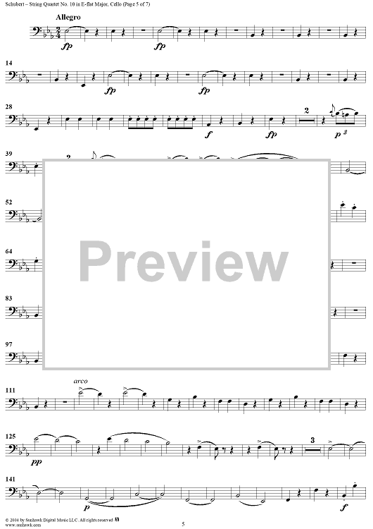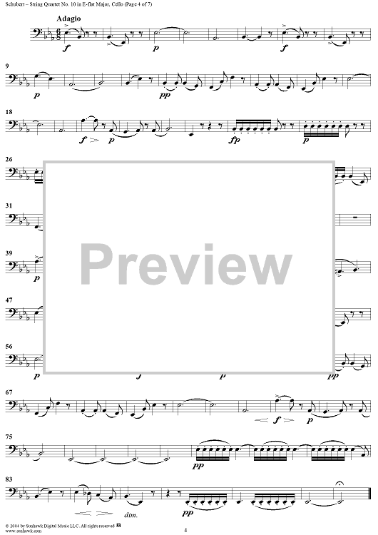 Digital Sheet Music for String Quartet No. 10 in E-flat Major, Op. posth. 125, No. 1 - Cello by Franz Schubert scored for String Quartet; id:306979