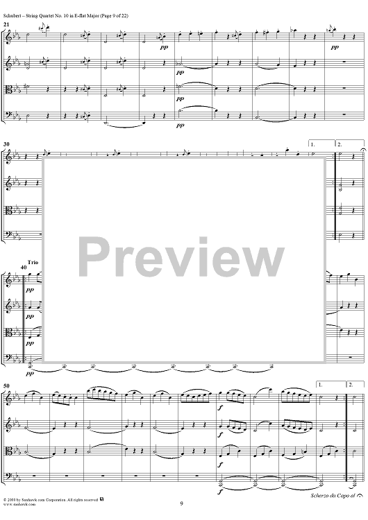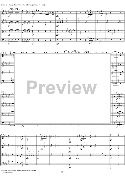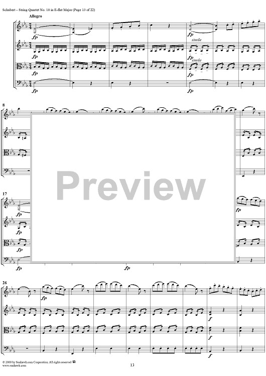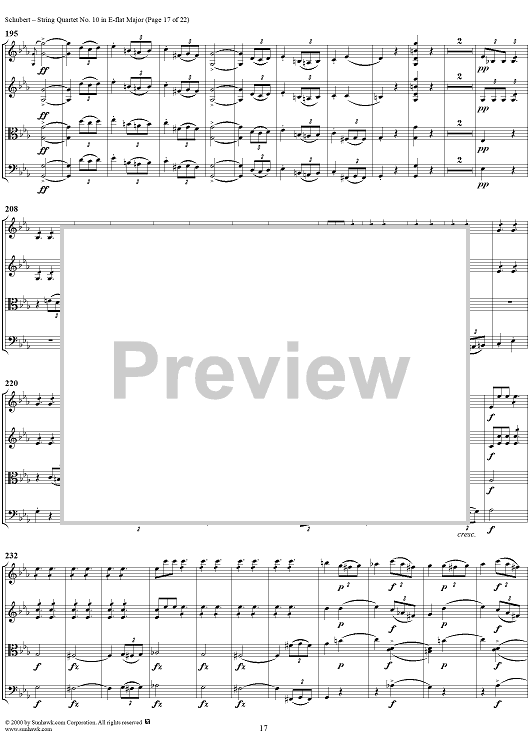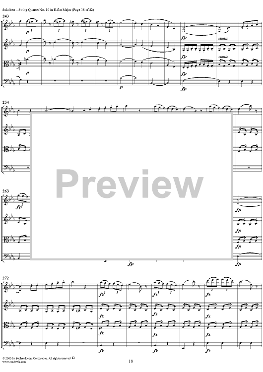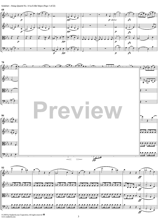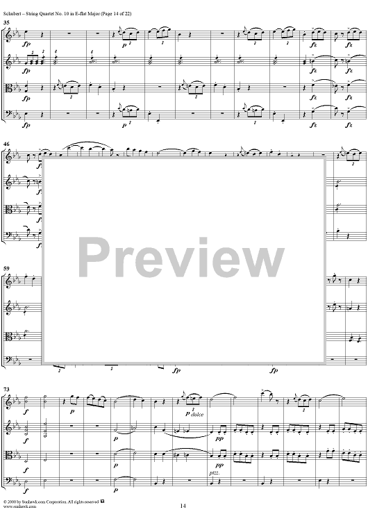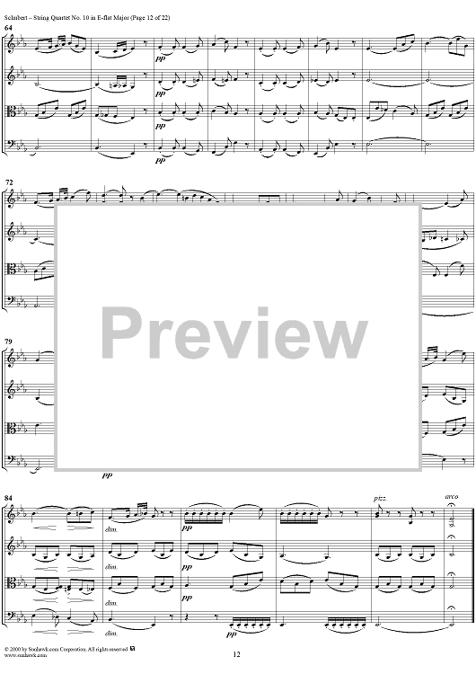 Digital Sheet Music for String Quartet No. 10 in E-flat Major, Op. posth. 125, No. 1 - Score by Franz Schubert scored for String Quartet; id:265197