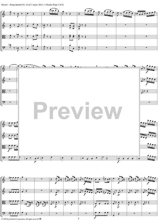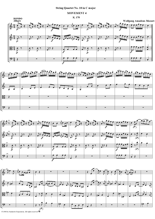 Digital Sheet Music for String Quartet No. 10, Movement 4 - Score by Wolfgang Amadeus Mozart scored for String Quartet; id:95961