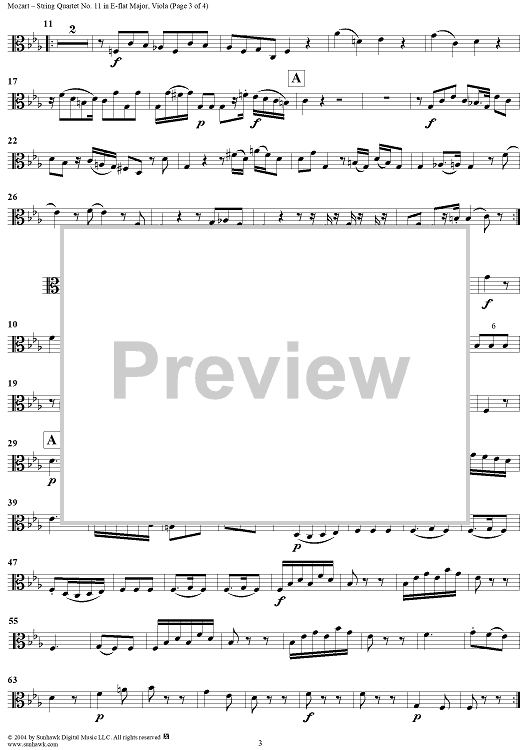 "String Quartet No. 11 in E-flat Major, K171 - Viola" Sheet Music by Wolfgang Amadeus Mozart