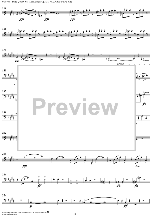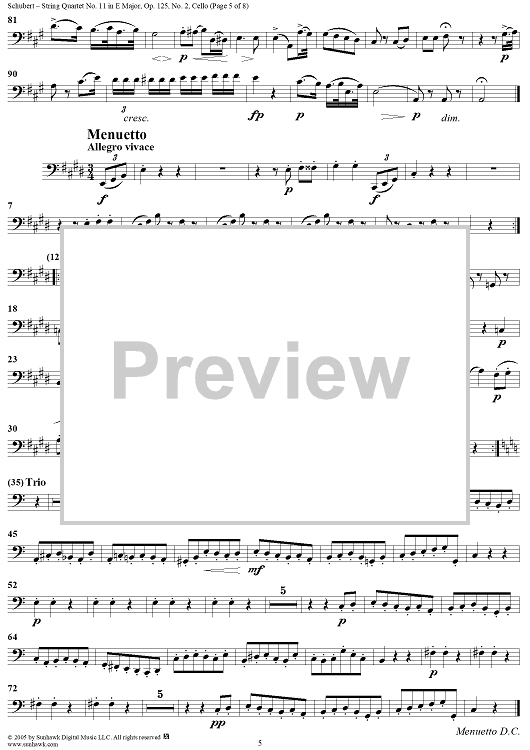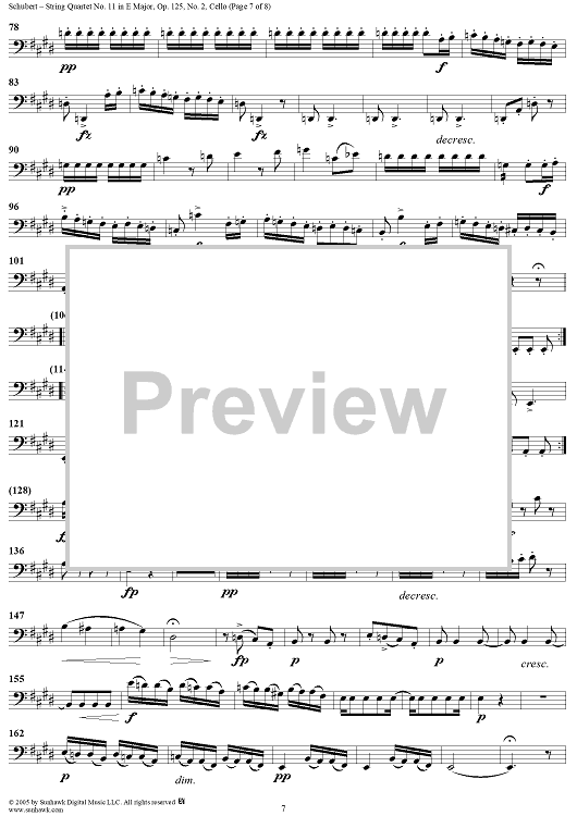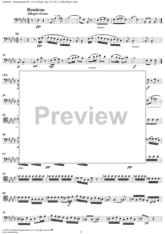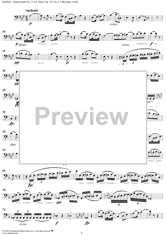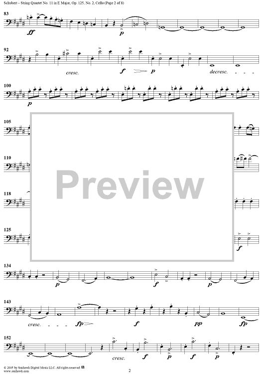 Digital Sheet Music for String Quartet No. 11 in E Major, Op. posth. 125, No. 2 - Cello by Franz Schubert scored for String Quartet; id:309196