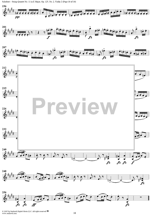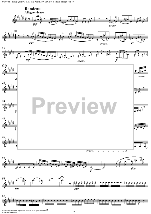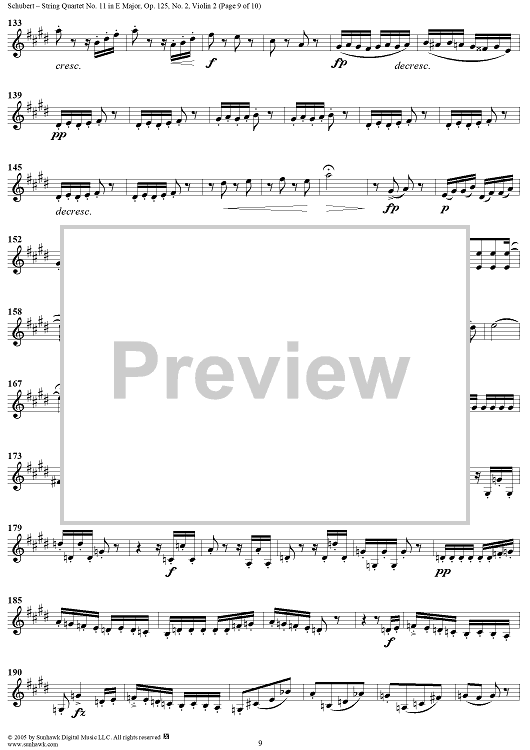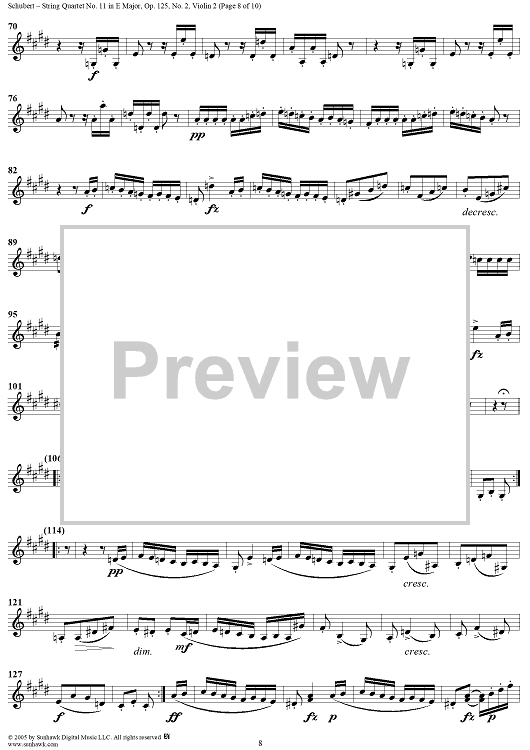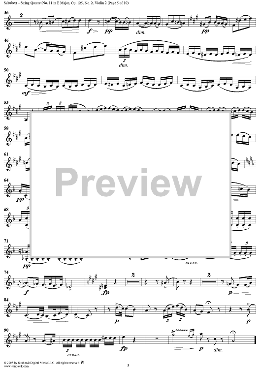 Digital Sheet Music for String Quartet No. 11 in E Major, Op. posth. 125, No. 2 - Violin 2 by Franz Schubert scored for String Quartet; id:309194