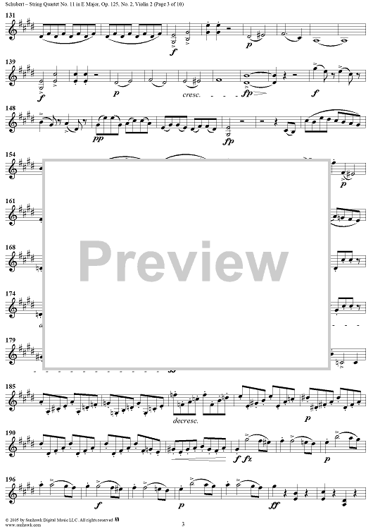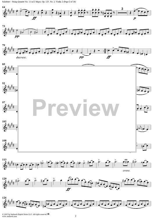 "String Quartet No. 11 in E Major, Op. posth. 125, No. 2 - Violin 2" Sheet Music by Franz Schubert