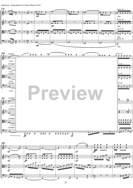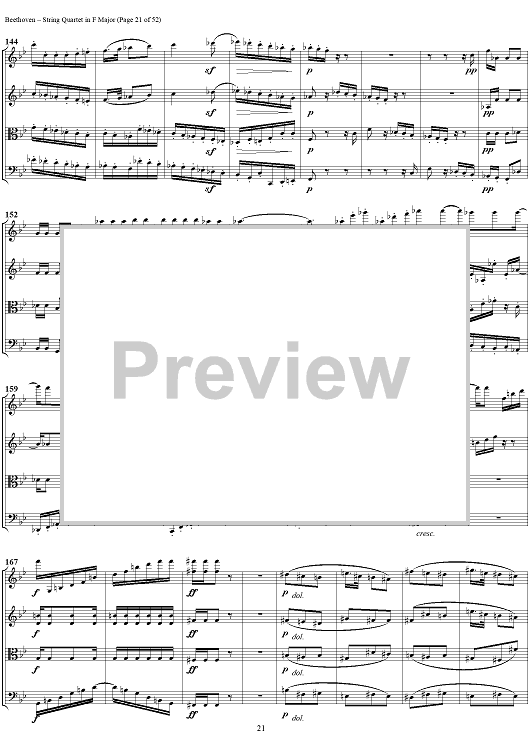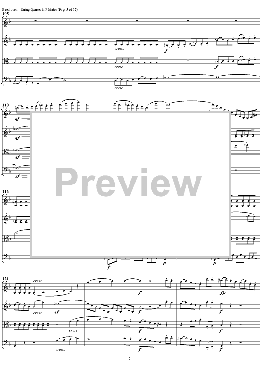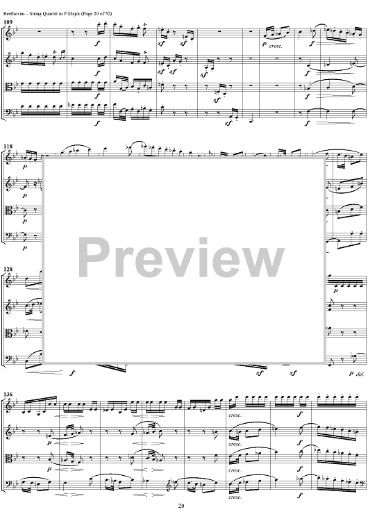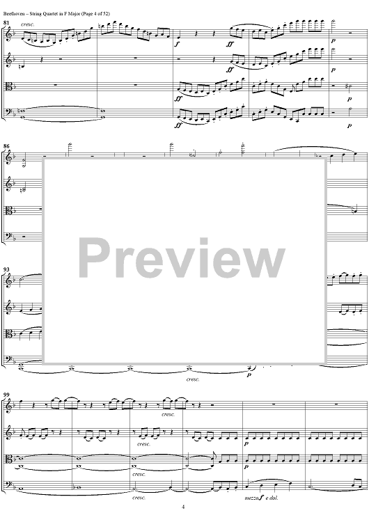 Digital Sheet Music for String Quartet No. 11 in F Minor, Op. 95 - Score by Ludwig van Beethoven scored for String Quartet; id:308608