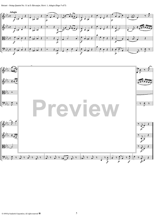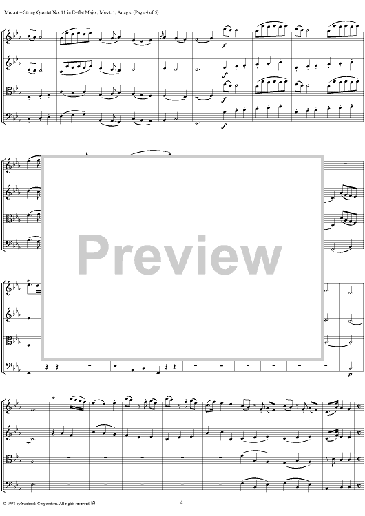 Digital Sheet Music for String Quartet No. 11, Movement 1 - Score by Wolfgang Amadeus Mozart scored for String Quartet; id:252605