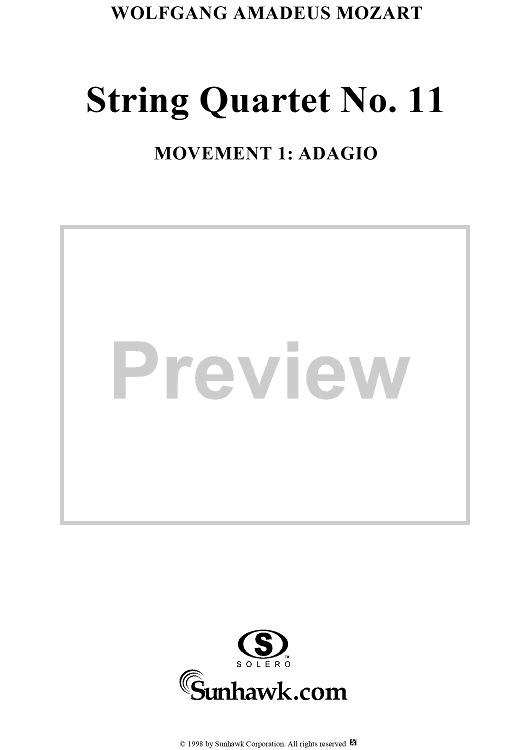 "String Quartet No. 11, Movement 1 - Score" Sheet Music by Wolfgang Amadeus Mozart