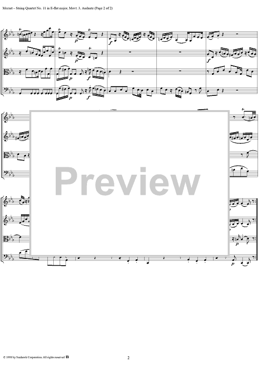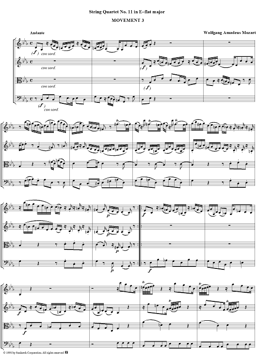 Digital Sheet Music for String Quartet No. 11, Movement 3 - Score by Wolfgang Amadeus Mozart scored for String Quartet; id:96017