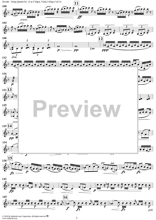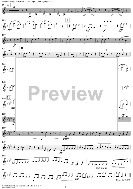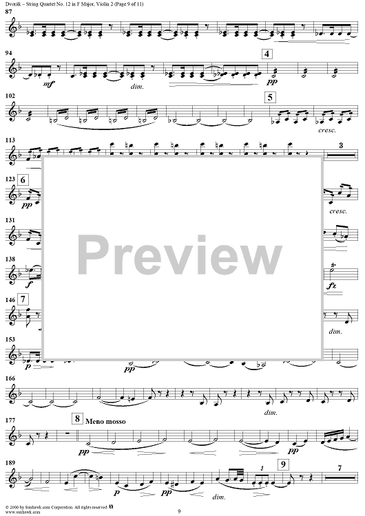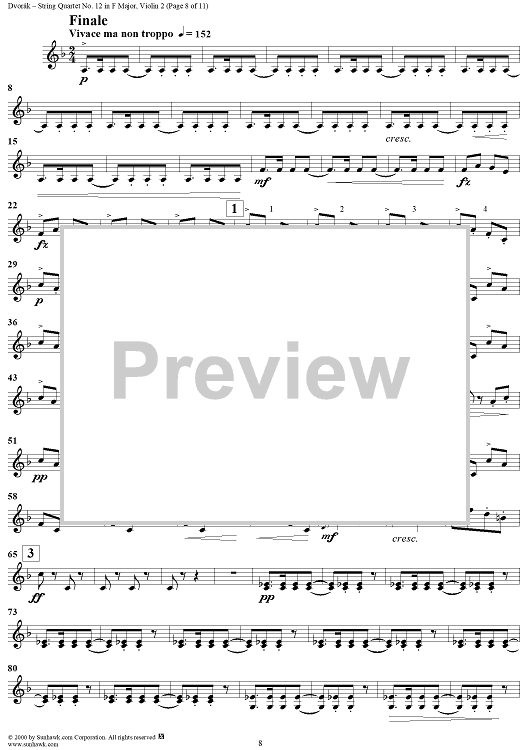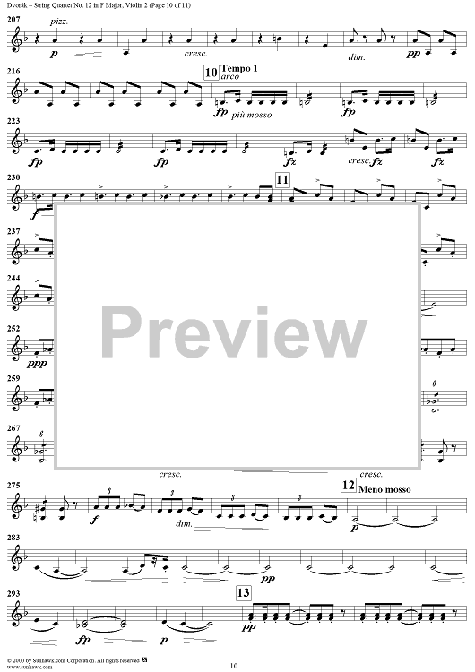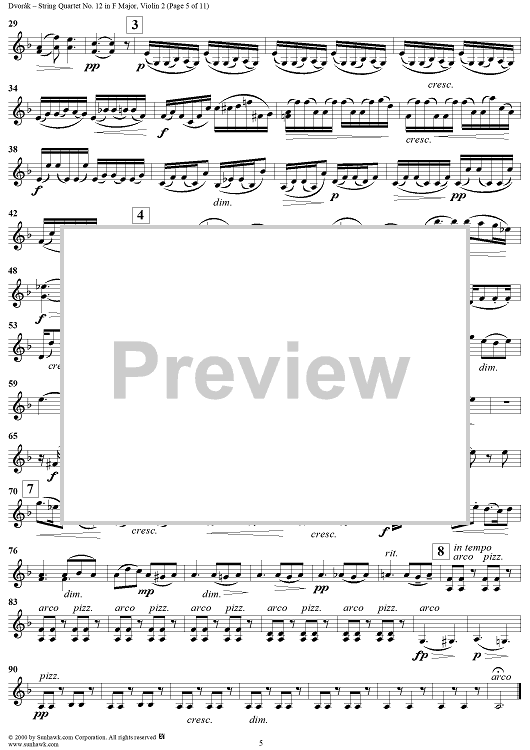 Digital Sheet Music for String Quartet No. 12 in F Major, Op. 96 - Violin 2 by Antonín Dvorák scored for String Quartet; id:271040