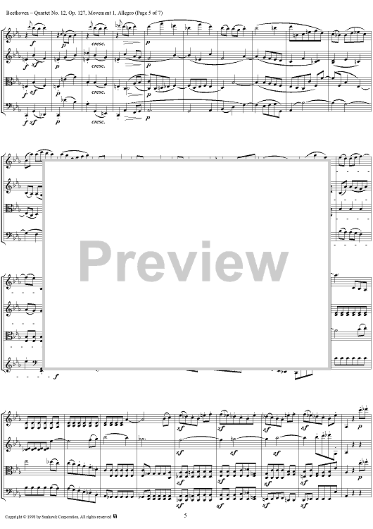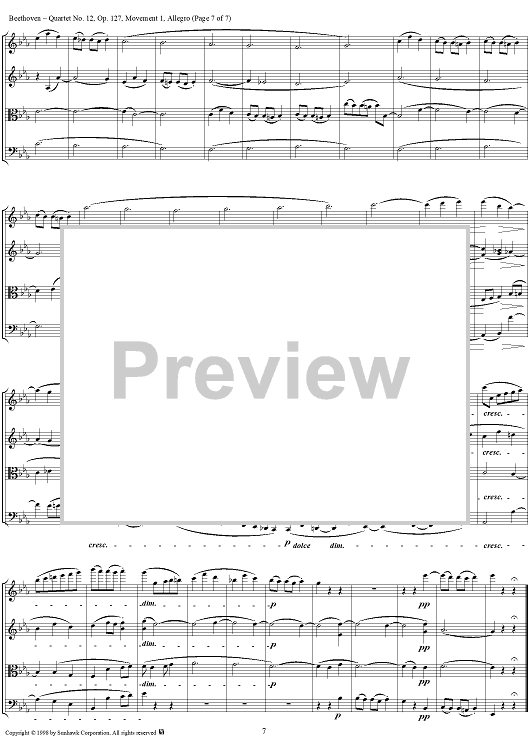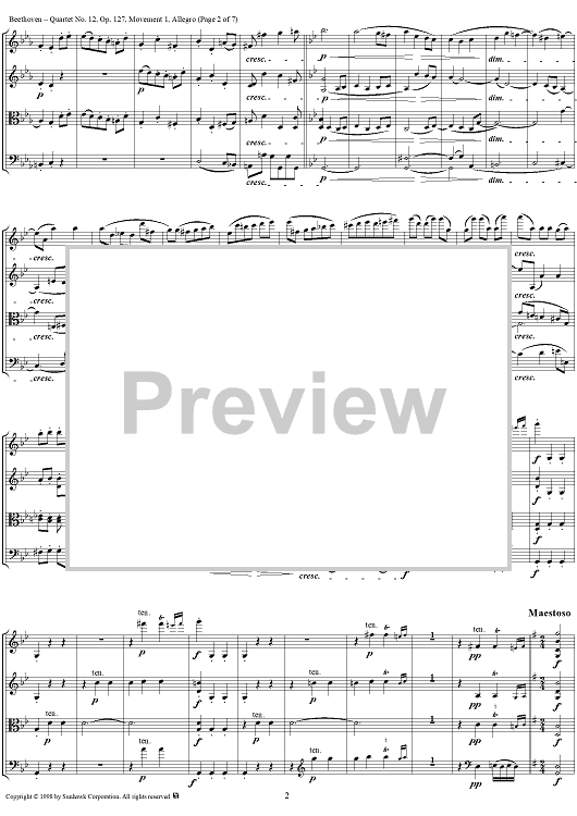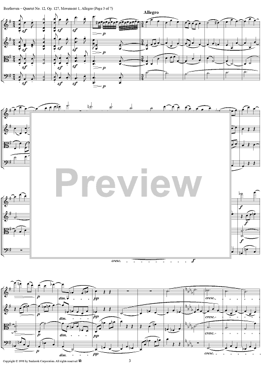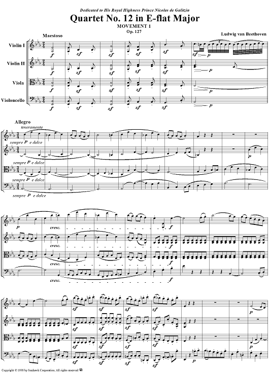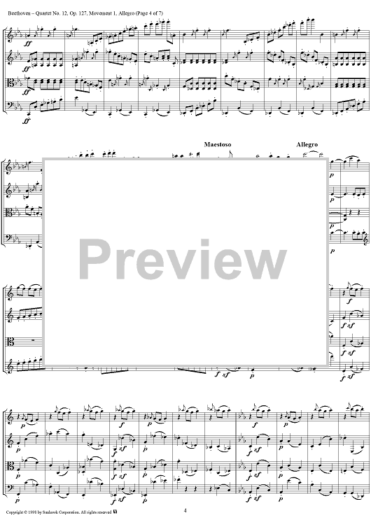 Digital Sheet Music for String Quartet No. 12, Movement 1 - Score by Ludwig van Beethoven scored for String Quartet; id:95558