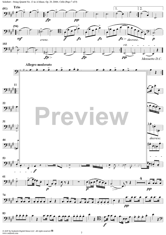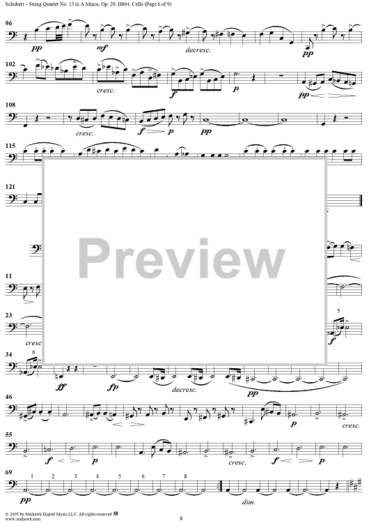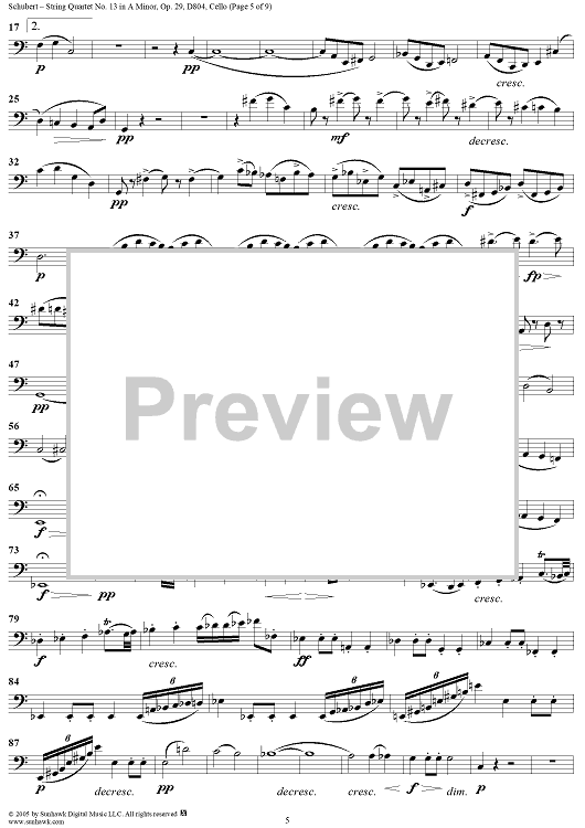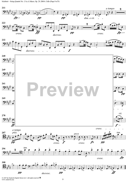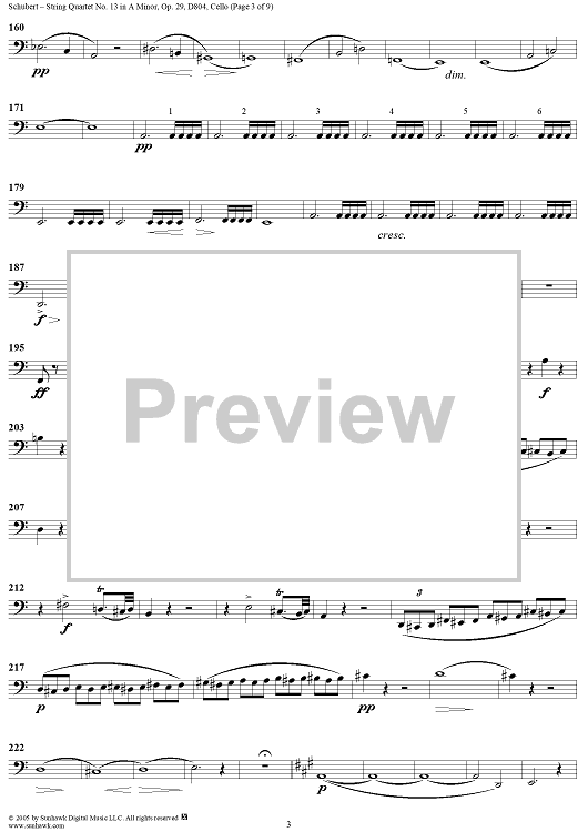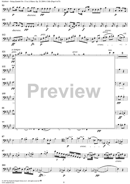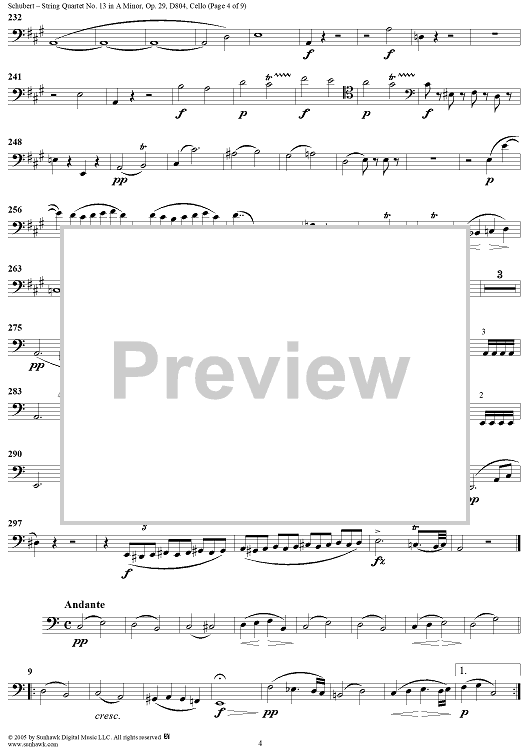 Digital Sheet Music for String Quartet No. 13 in A Minor, Op. 29 - Cello by Franz Schubert scored for String Quartet; id:309191