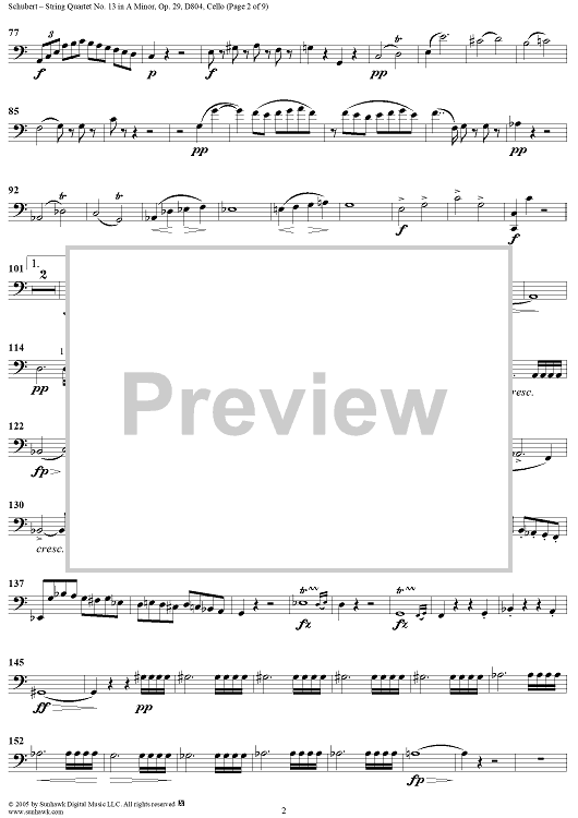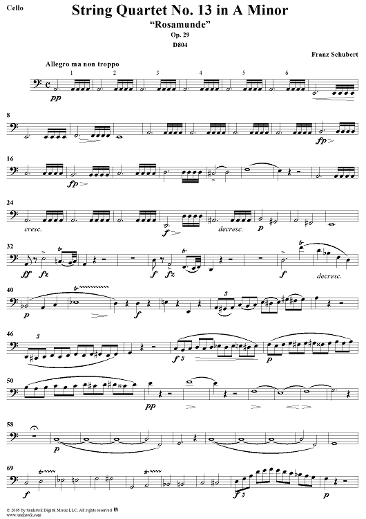 "String Quartet No. 13 in A Minor, Op. 29 - Cello" Sheet Music by Franz Schubert