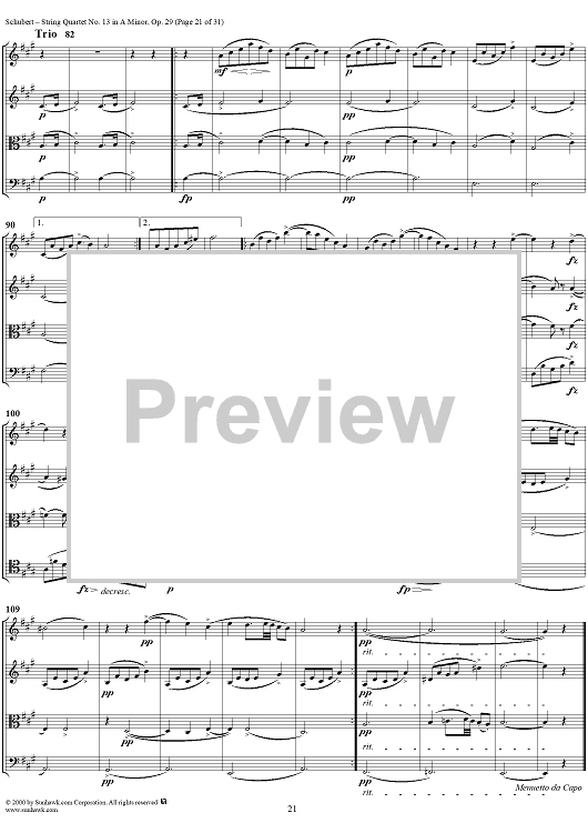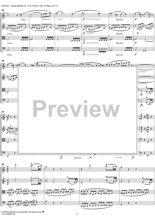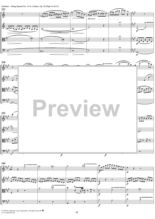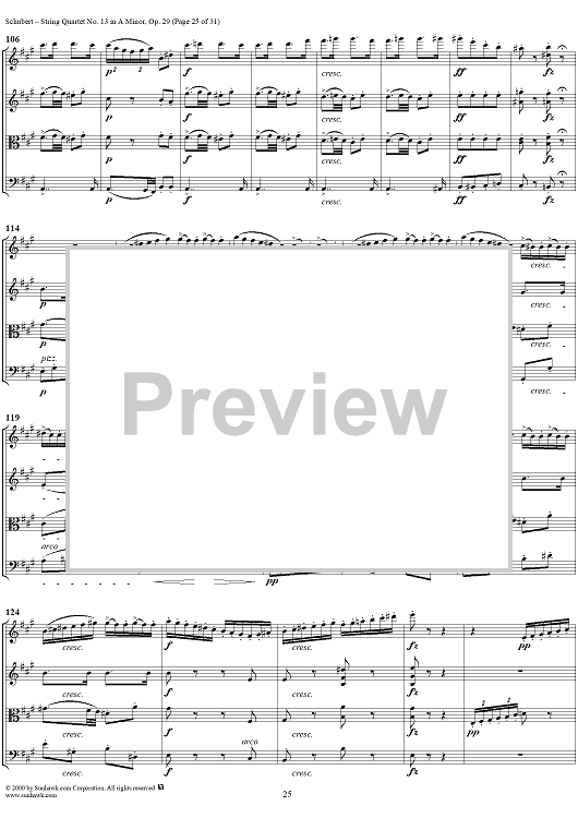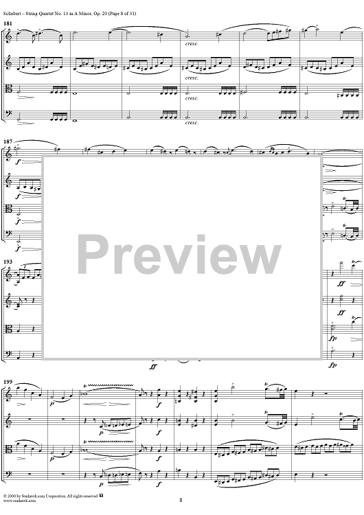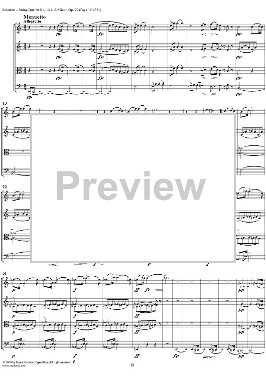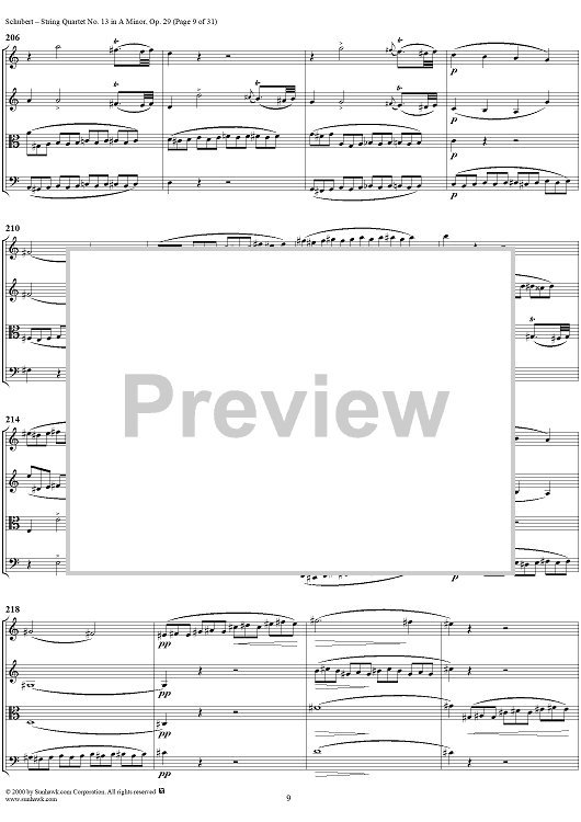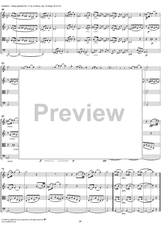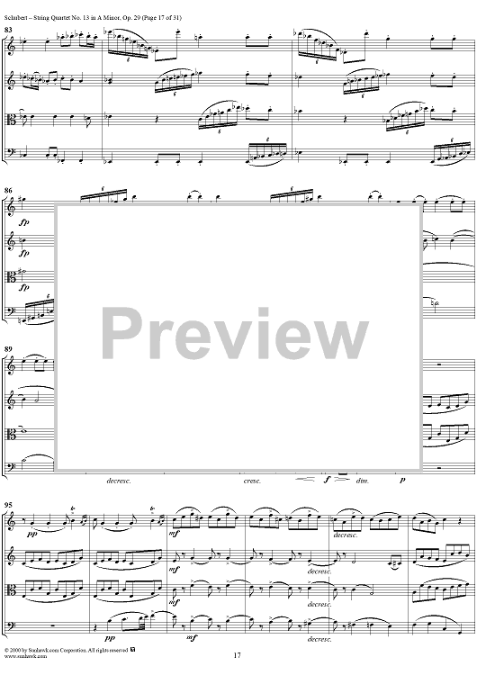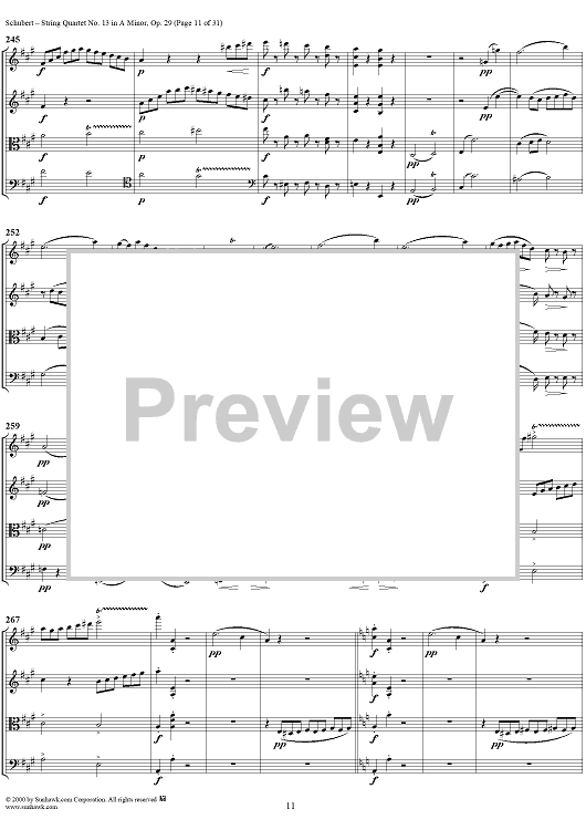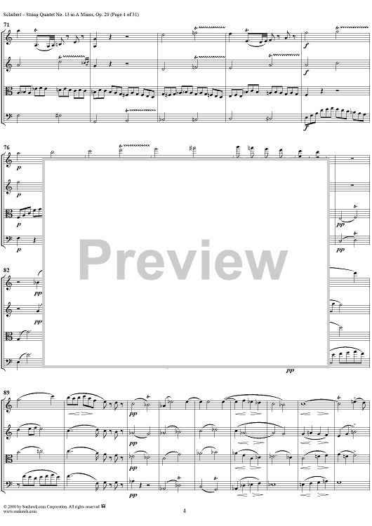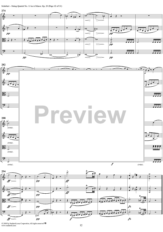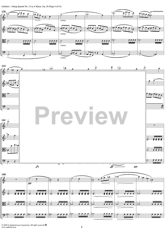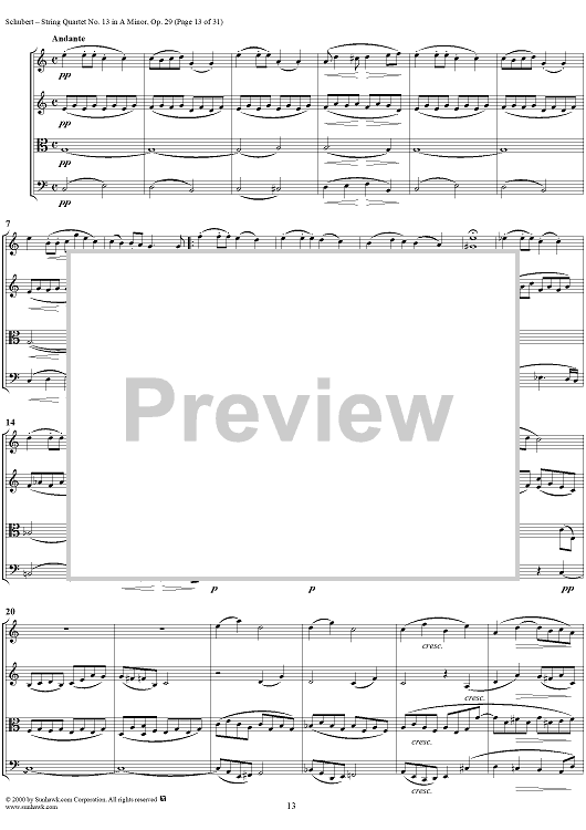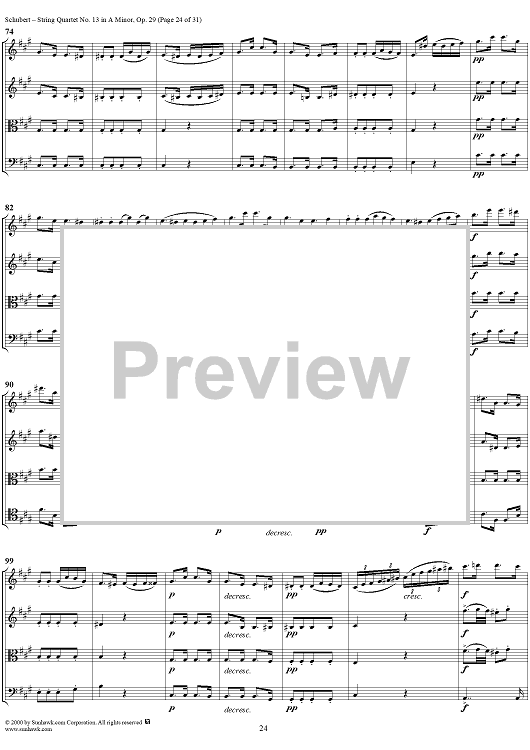 Digital Sheet Music for String Quartet No. 13 in A Minor, Op. 29 - Score by Franz Schubert scored for String Quartet; id:269939
