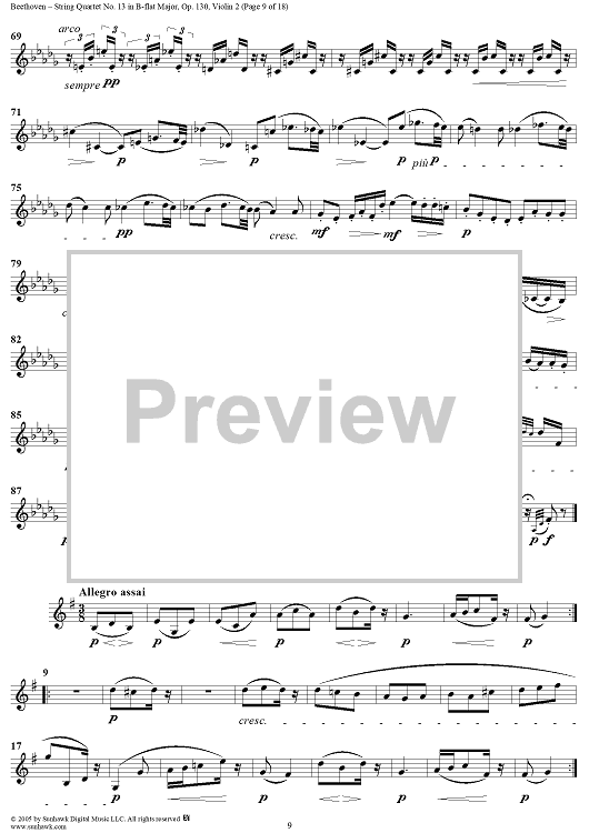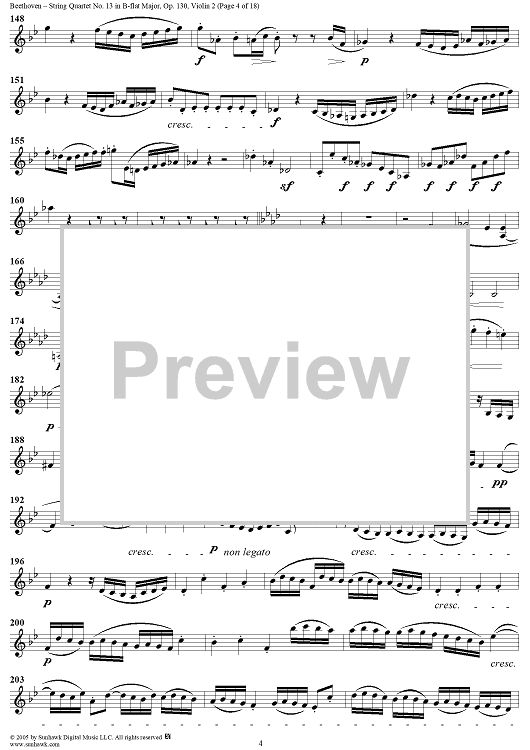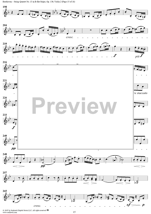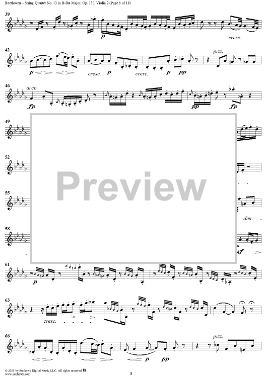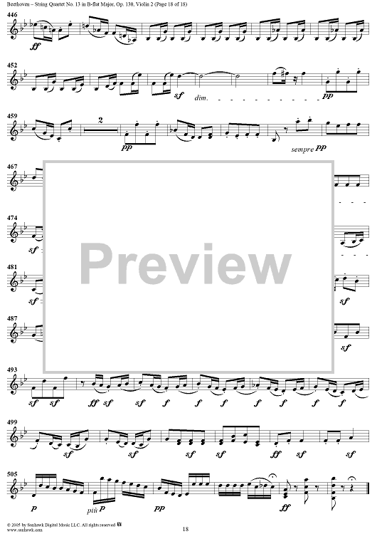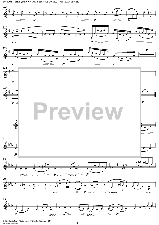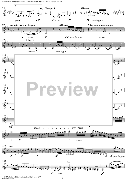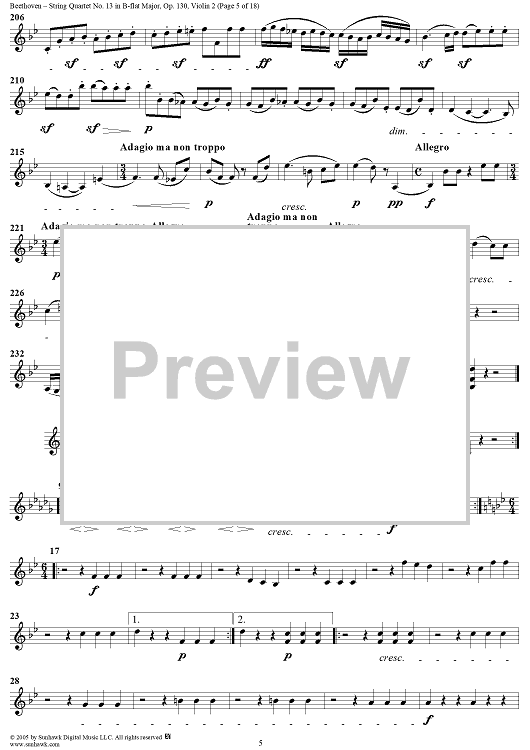 Digital Sheet Music for String Quartet No. 13 in B-flat Major, Op. 130 - Violin 2 by Ludwig van Beethoven scored for String Quartet; id:308616