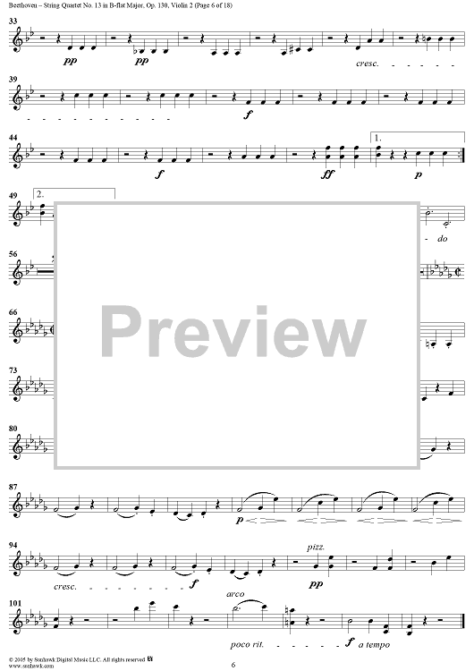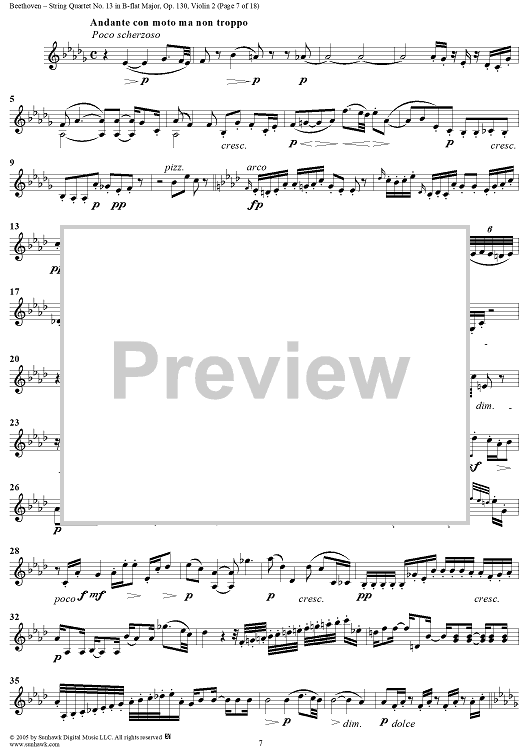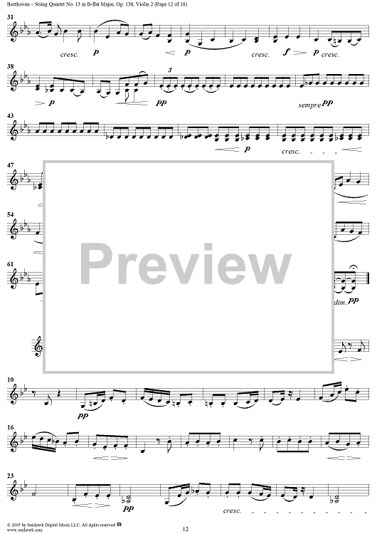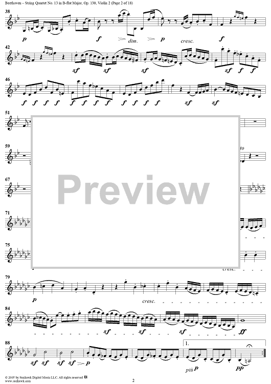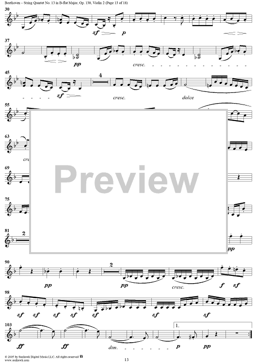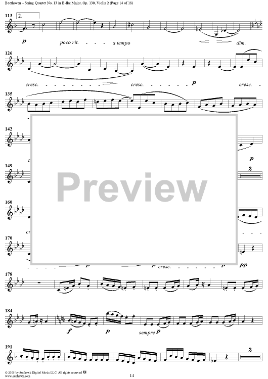 "String Quartet No. 13 in B-flat Major, Op. 130 - Violin 2" Sheet Music by Ludwig van Beethoven