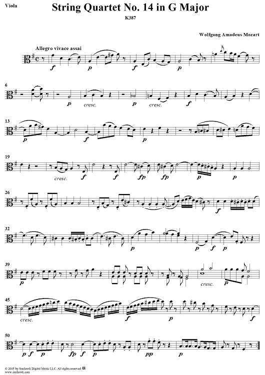 "String Quartet No. 14 in G Major, K387 - Viola" Sheet Music by Wolfgang Amadeus Mozart