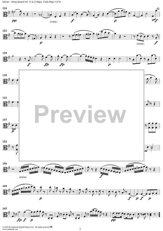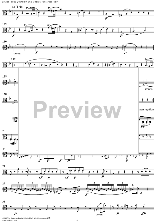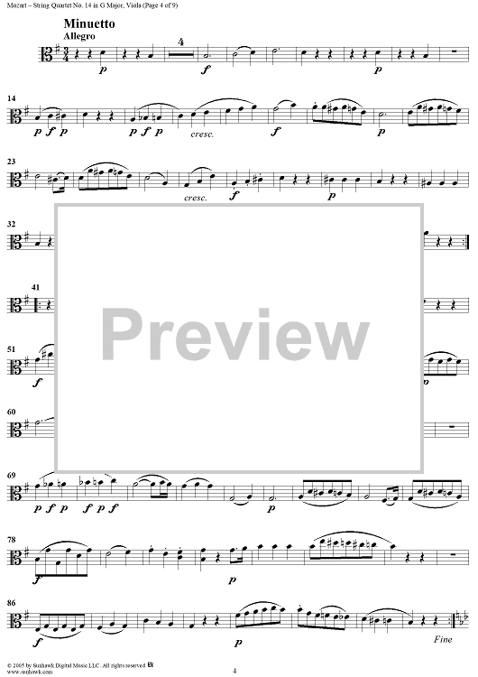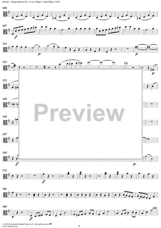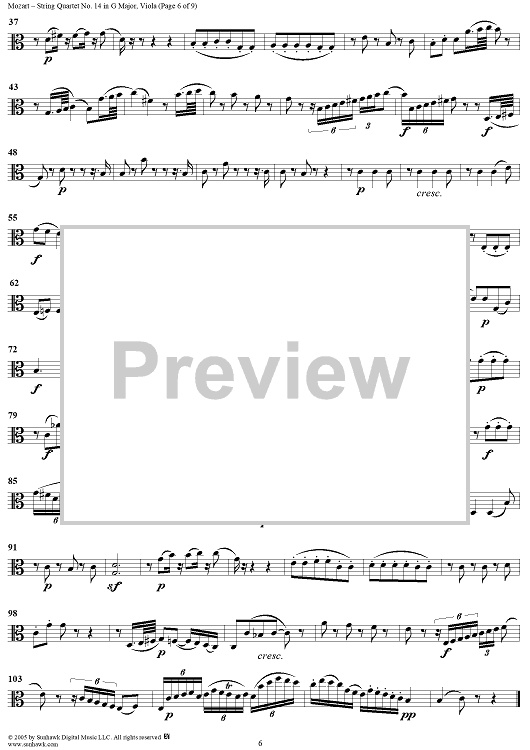 Digital Sheet Music for String Quartet No. 14 in G Major, K387 - Viola by Wolfgang Amadeus Mozart scored for String Quartet; id:309240