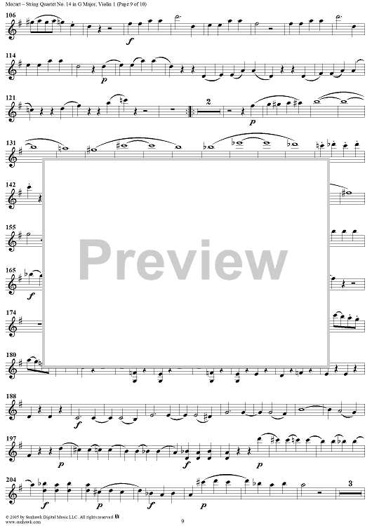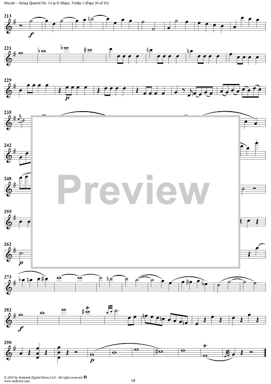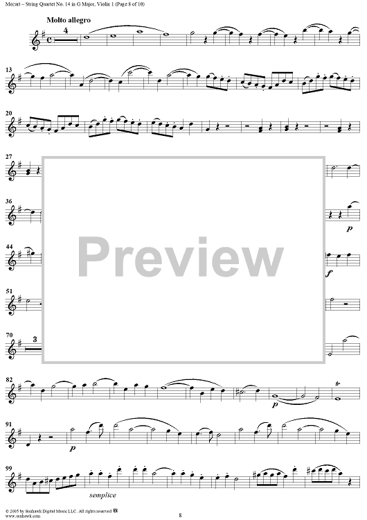 Digital Sheet Music for String Quartet No. 14 in G Major, K387 - Violin 1 by Wolfgang Amadeus Mozart scored for String Quartet; id:309238