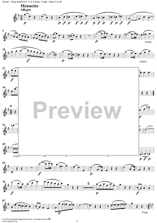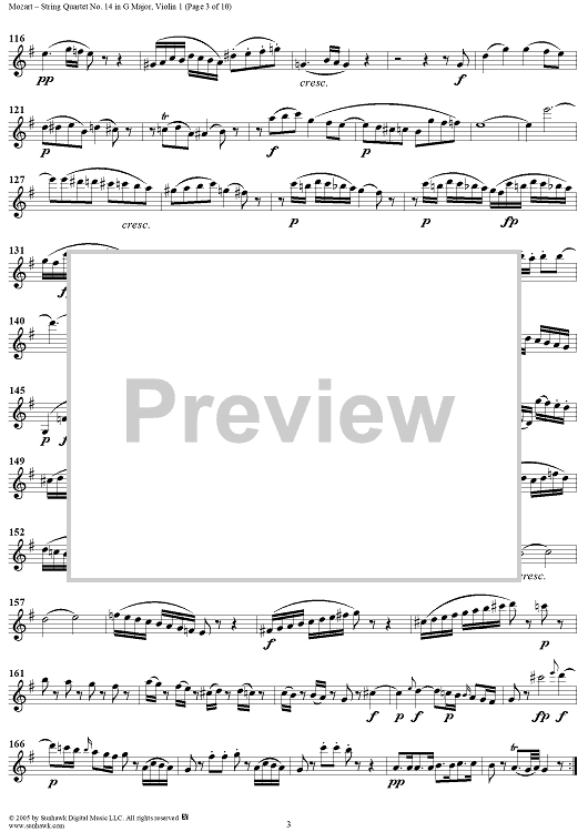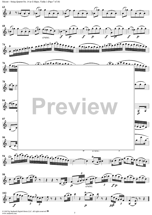 "String Quartet No. 14 in G Major, K387 - Violin 1" Sheet Music by Wolfgang Amadeus Mozart