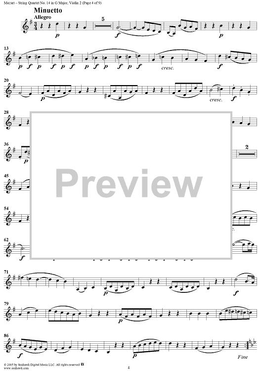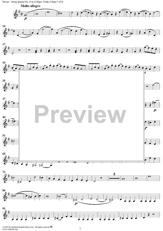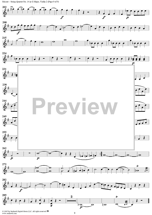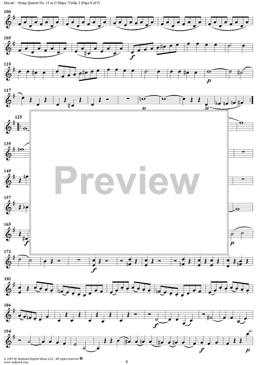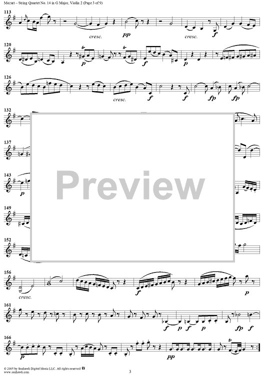 Digital Sheet Music for String Quartet No. 14 in G Major, K387 - Violin 2 by Wolfgang Amadeus Mozart scored for String Quartet; id:309239