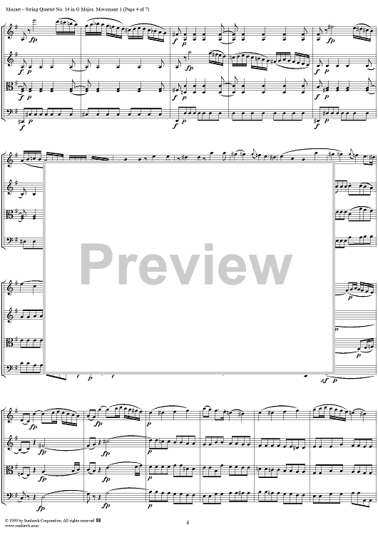 Digital Sheet Music for String Quartet No. 14, Movement 1 - Score by Wolfgang Amadeus Mozart scored for String Quartet; id:118558