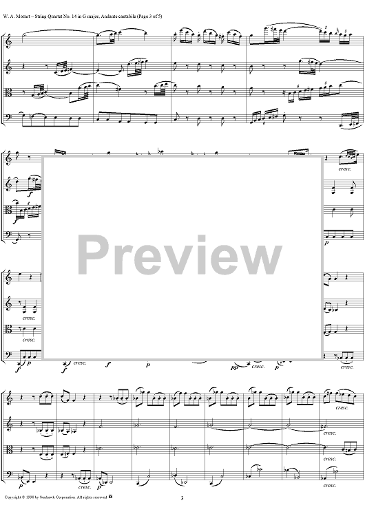 Digital Sheet Music for String Quartet No. 14, Movement 3 - Score by Wolfgang Amadeus Mozart scored for String Quartet; id:252616