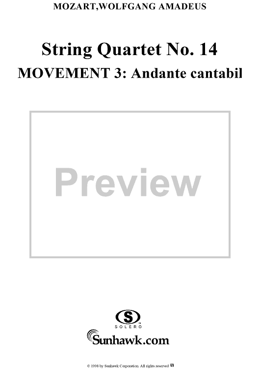 "String Quartet No. 14, Movement 3 - Score" Sheet Music by Wolfgang Amadeus Mozart