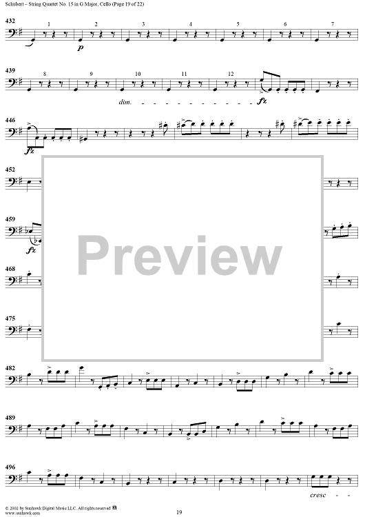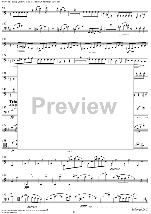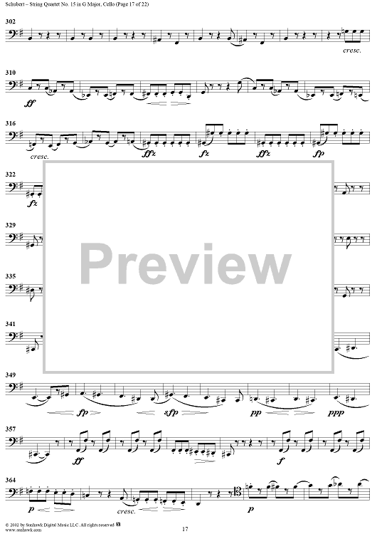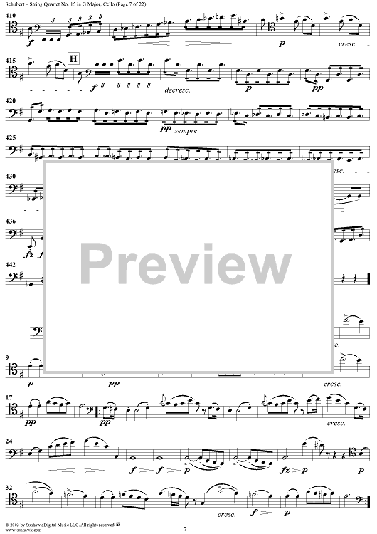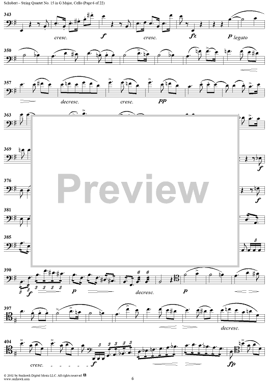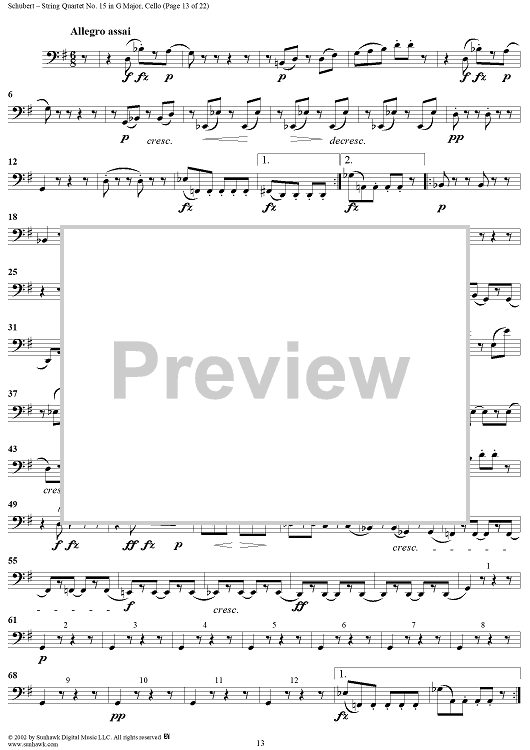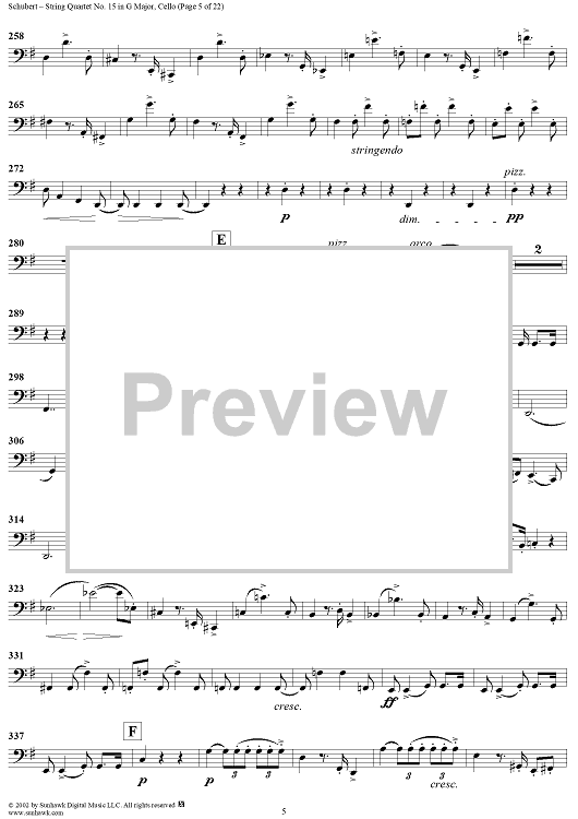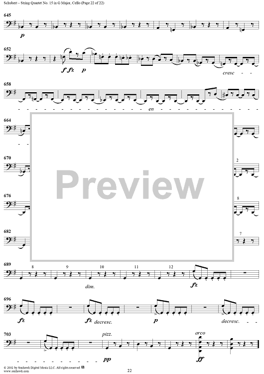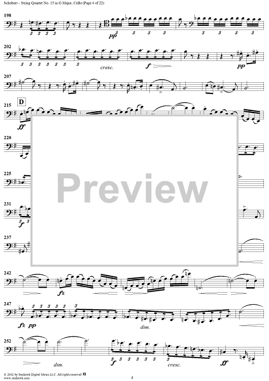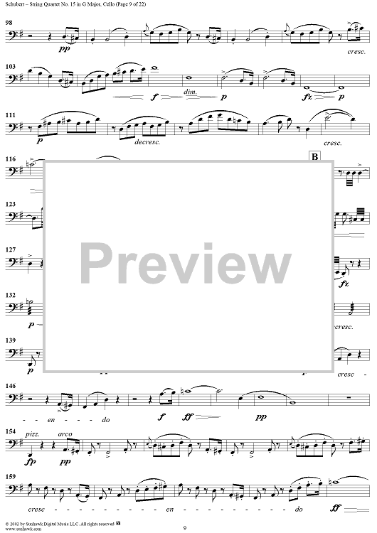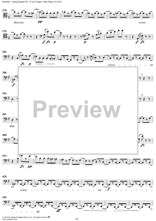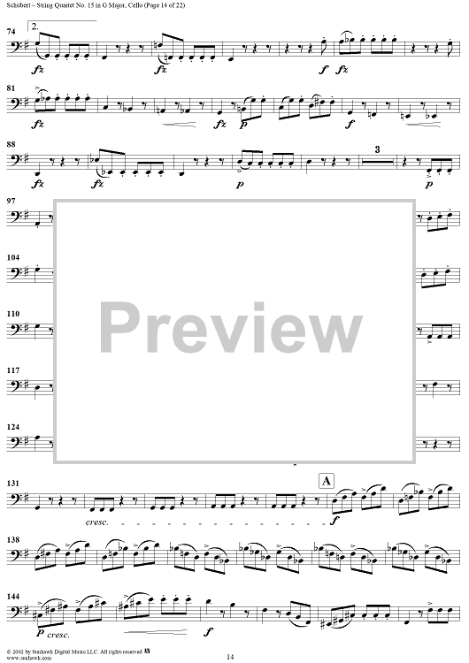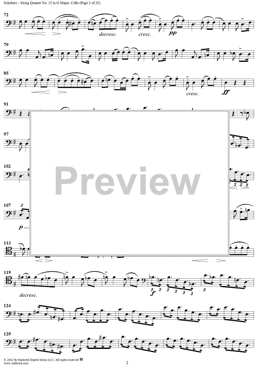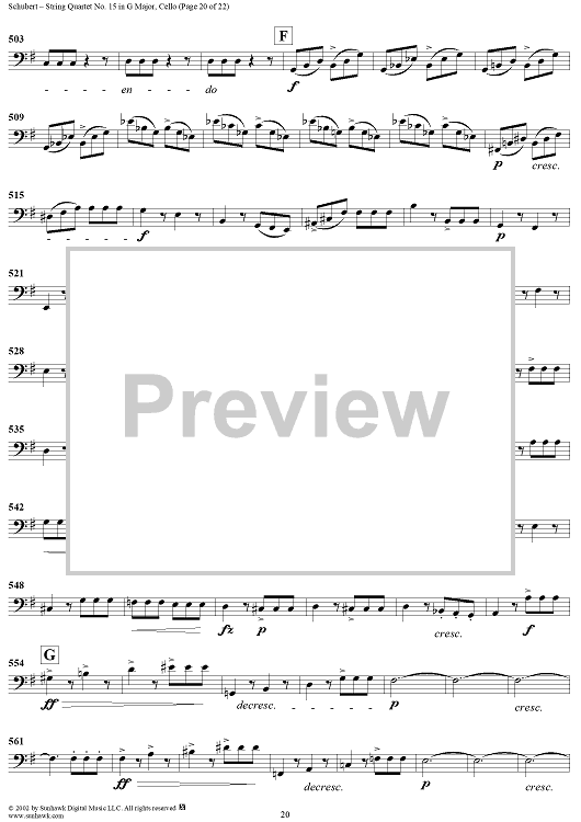 Digital Sheet Music for String Quartet No. 15 in G Major, Op. 161 - Cello by Franz Schubert scored for String Quartet; id:256373