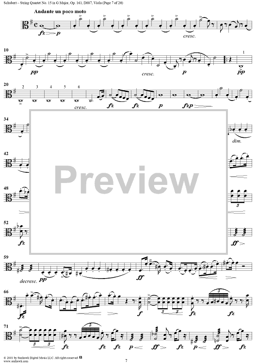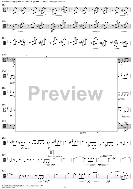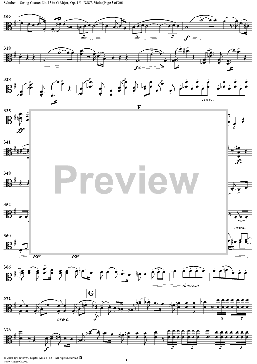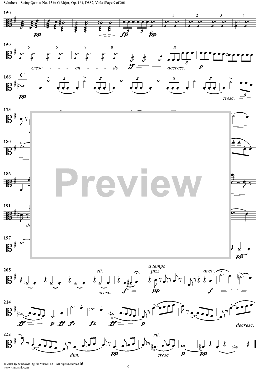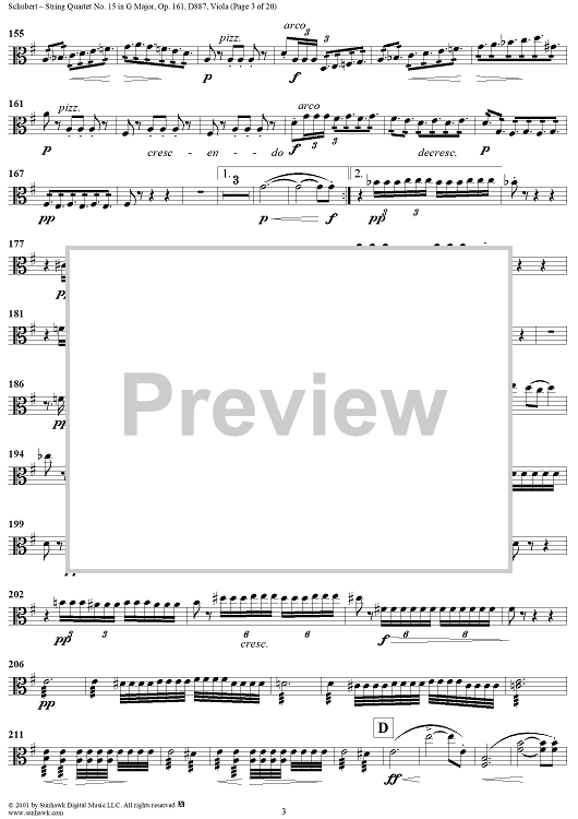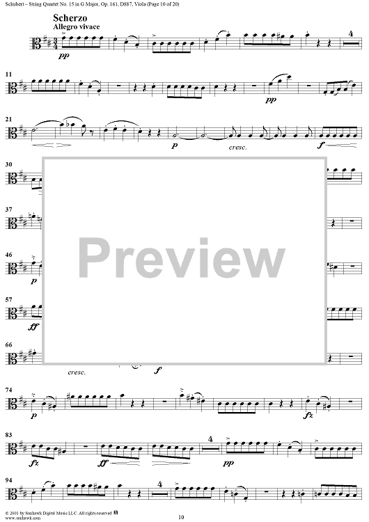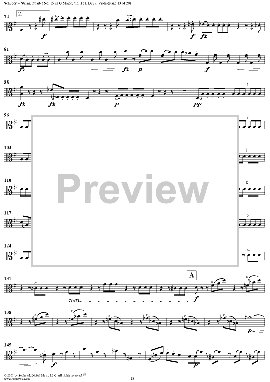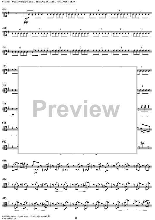Digital Sheet Music for String Quartet No. 15 in G Major, Op. 161 - Viola by Franz Schubert scored for String Quartet; id:256368