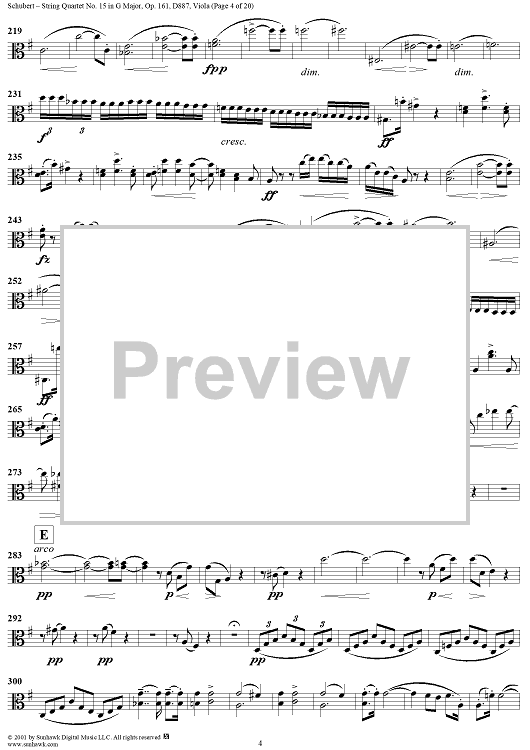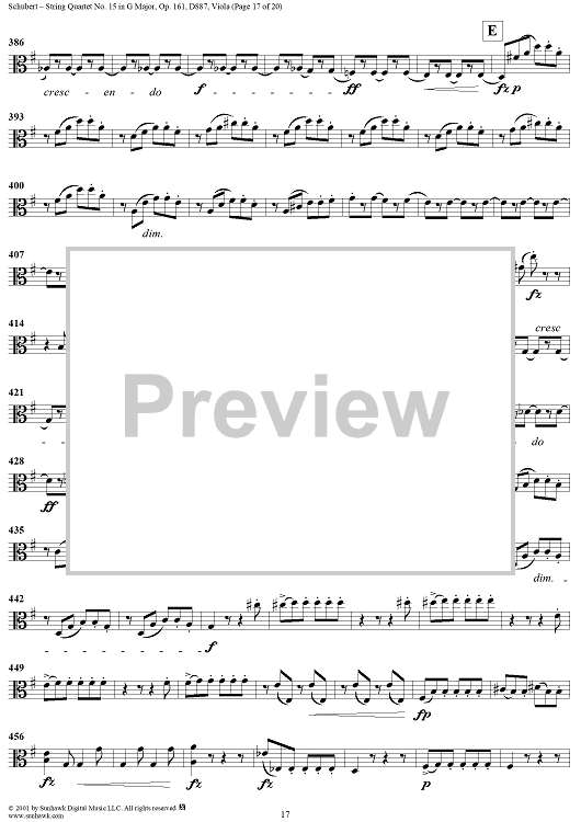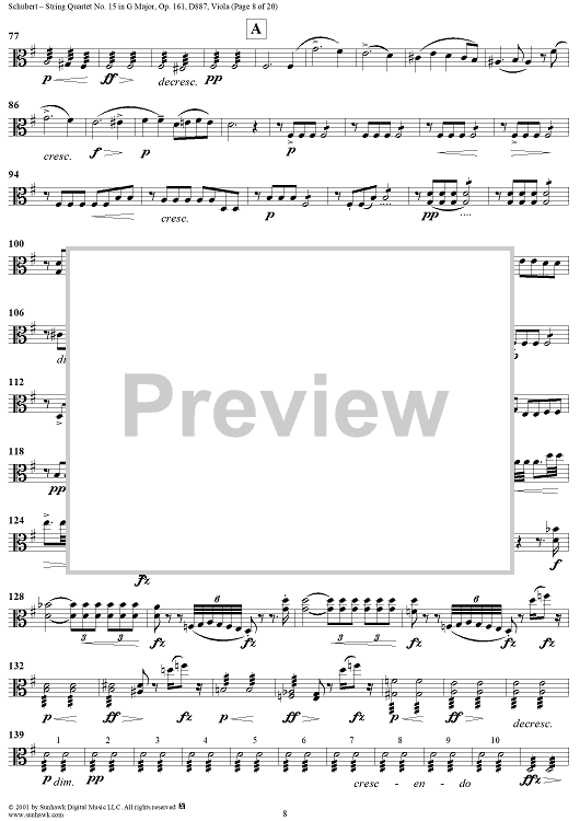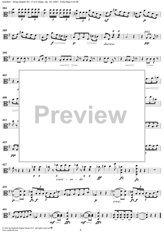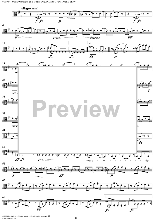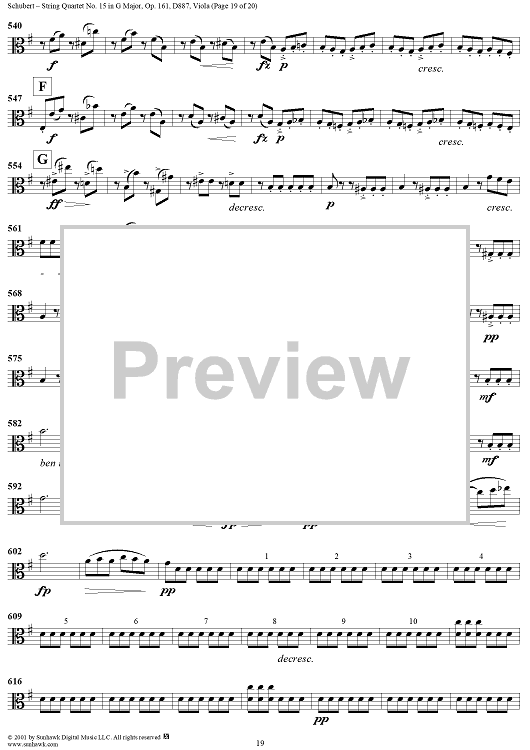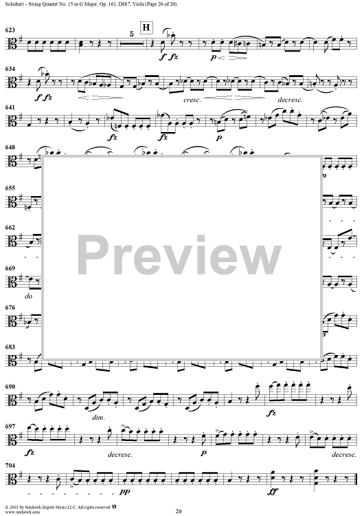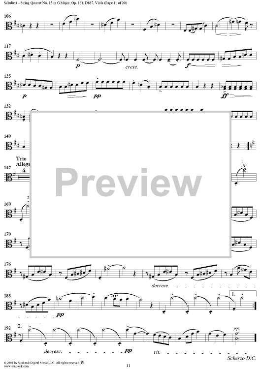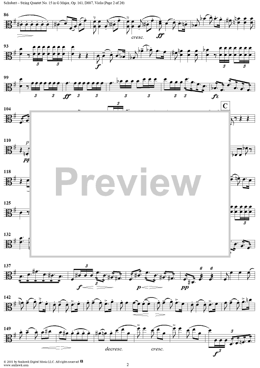 Digital Sheet Music for String Quartet No. 15 in G Major, Op. 161 - Viola by Franz Schubert scored for String Quartet; id:256368
