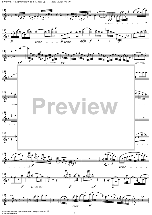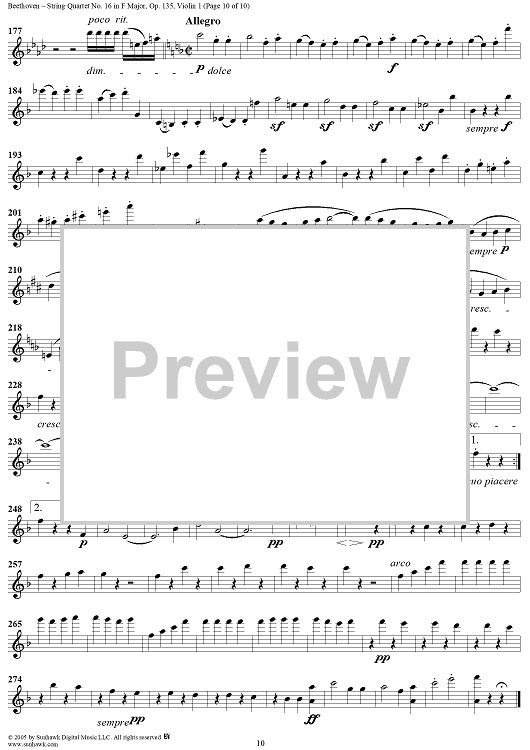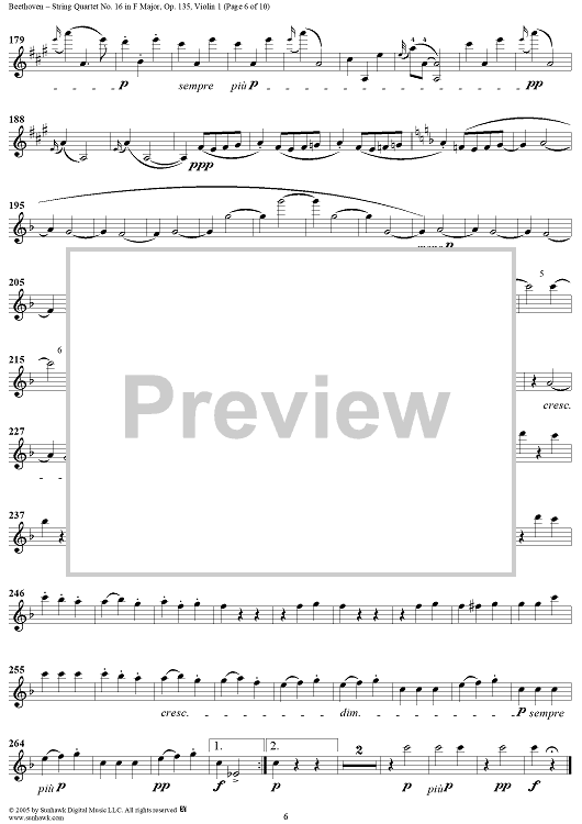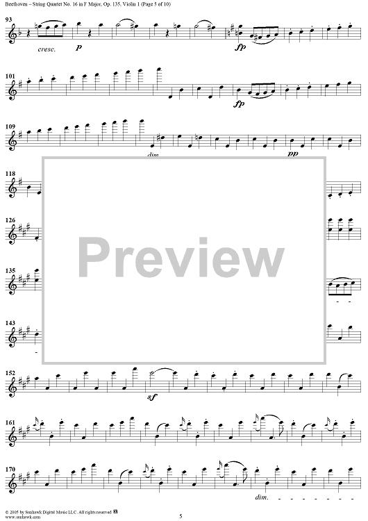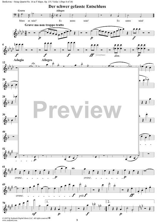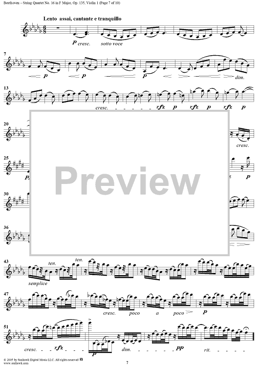 Digital Sheet Music for String Quartet No. 16 in F Major, Op. 135 - Violin 1 by Ludwig van Beethoven scored for String Quartet; id:308630