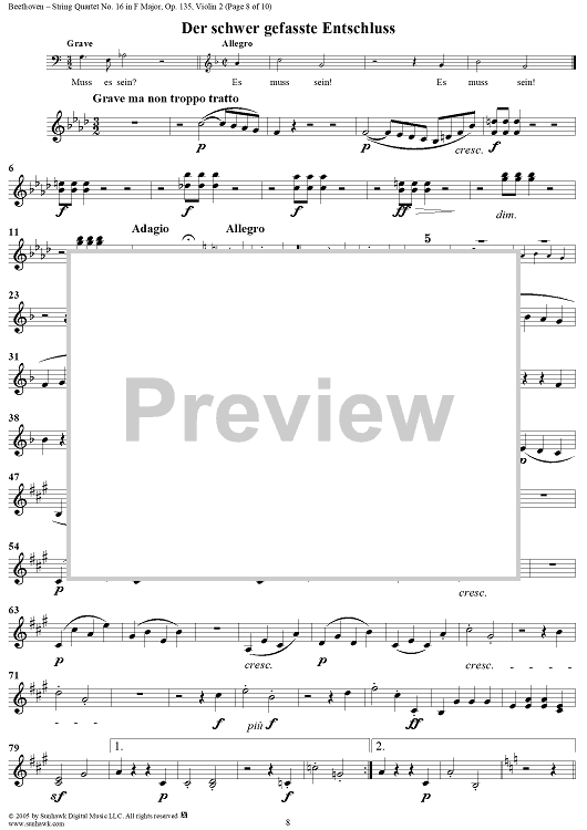 "String Quartet No. 16 in F Major, Op. 135 - Violin 2" Sheet Music by Ludwig van Beethoven